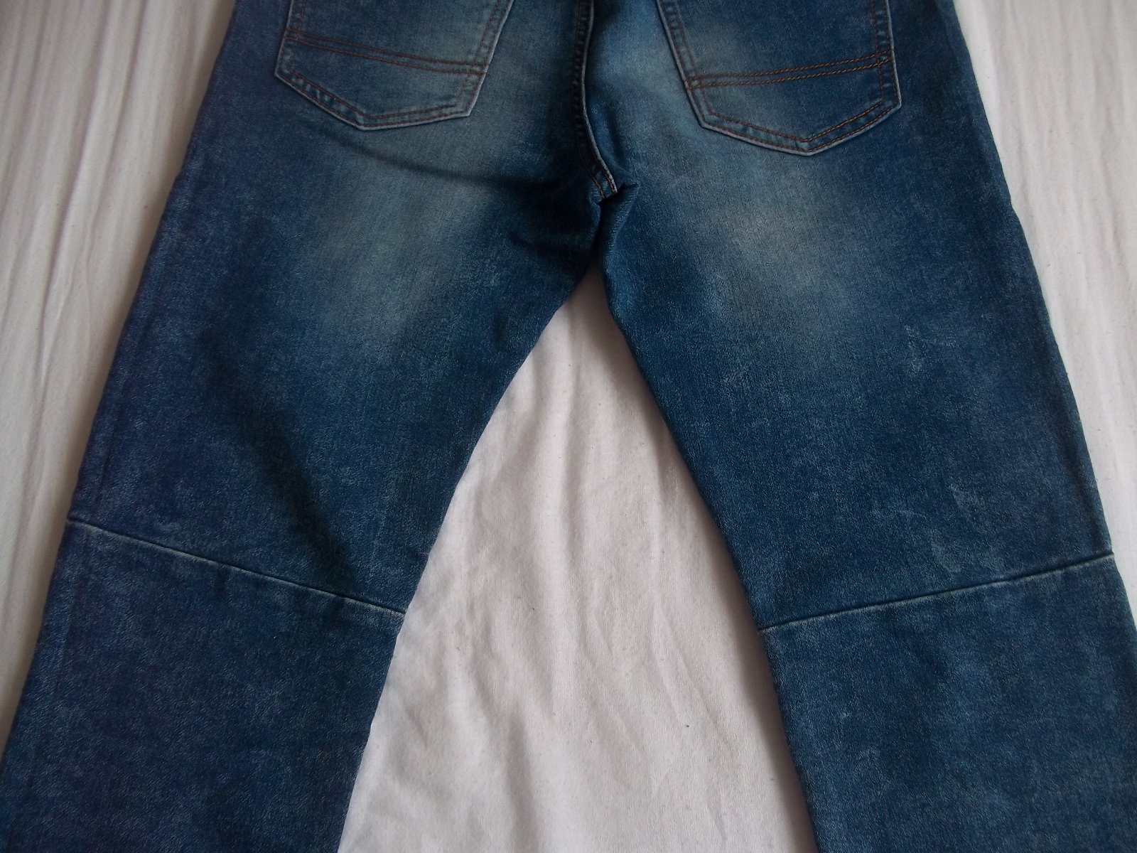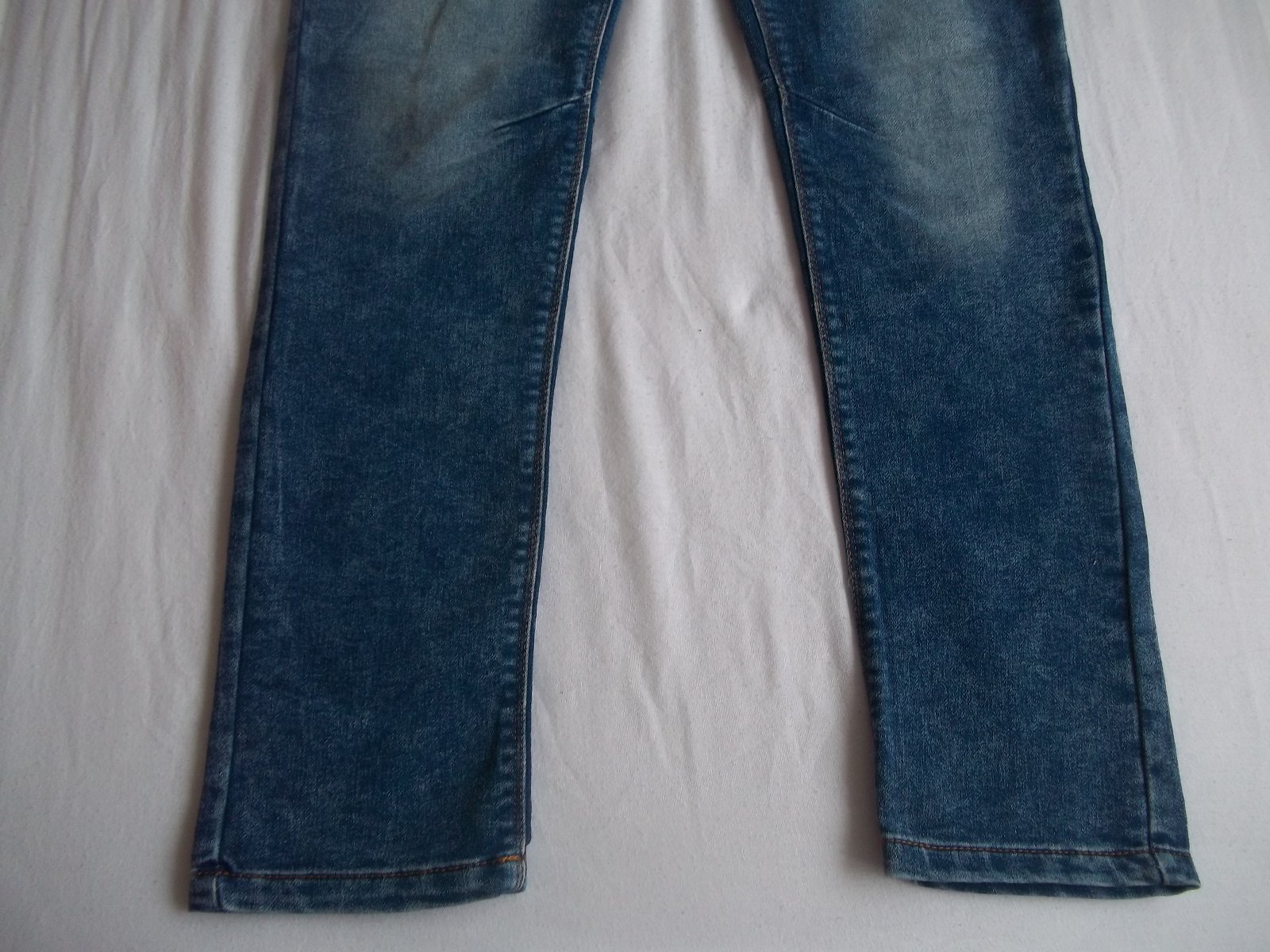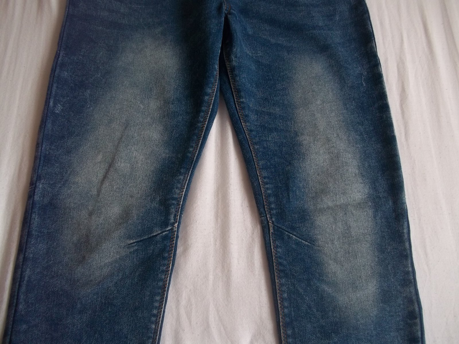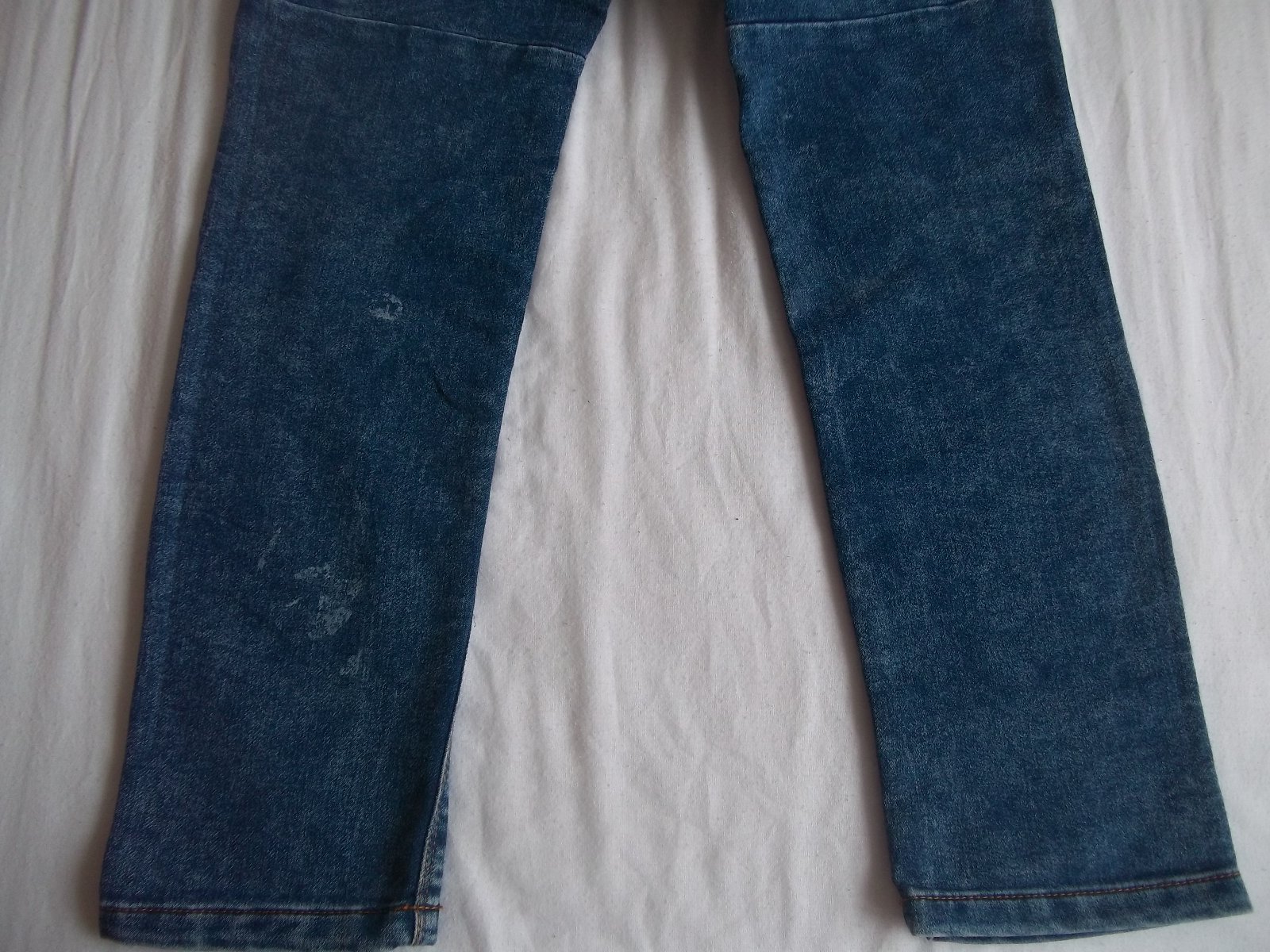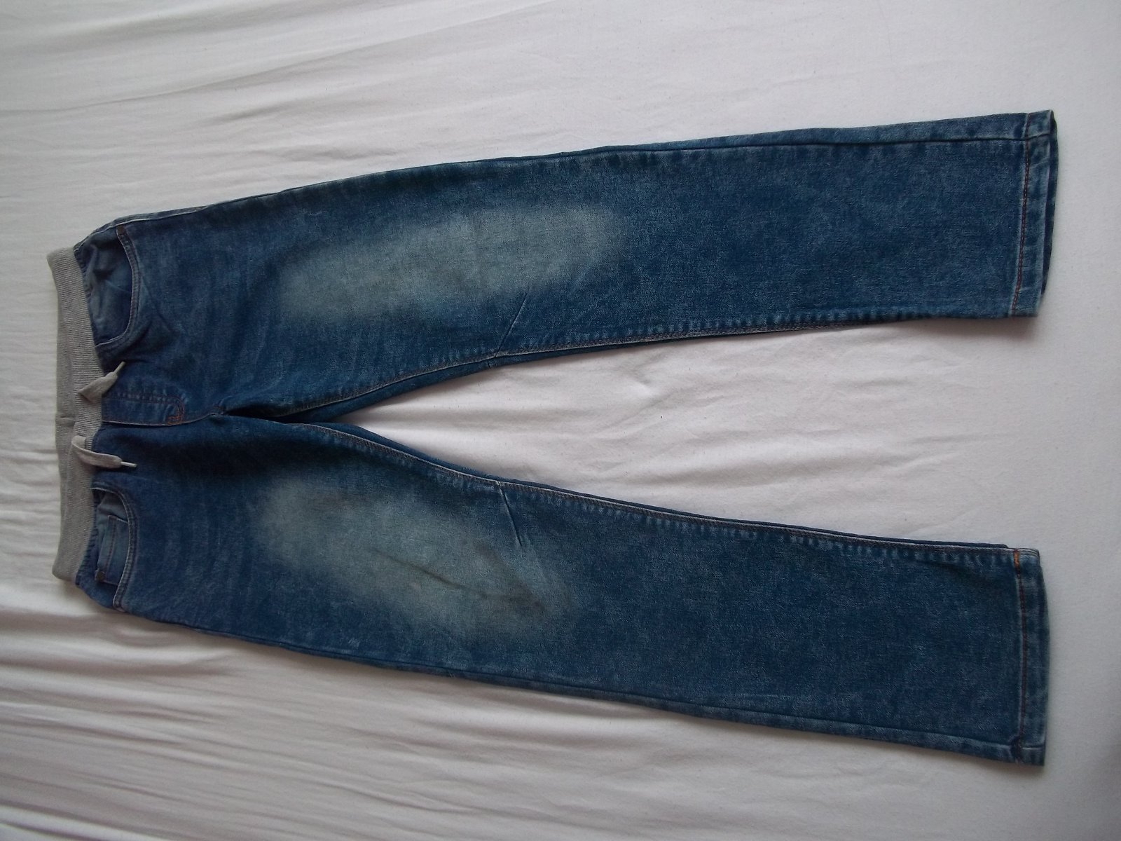 Predám málo nosené rifle. Rifle sú na gumičku a šnúrku. Rifle majú dve vrecká vpredu a dve vrecká vzadu. Na zadnej strane ľavej nohavice bledšie škvrny od novoty (viď foto). Látka nie je poškodená, len vyblednutá.