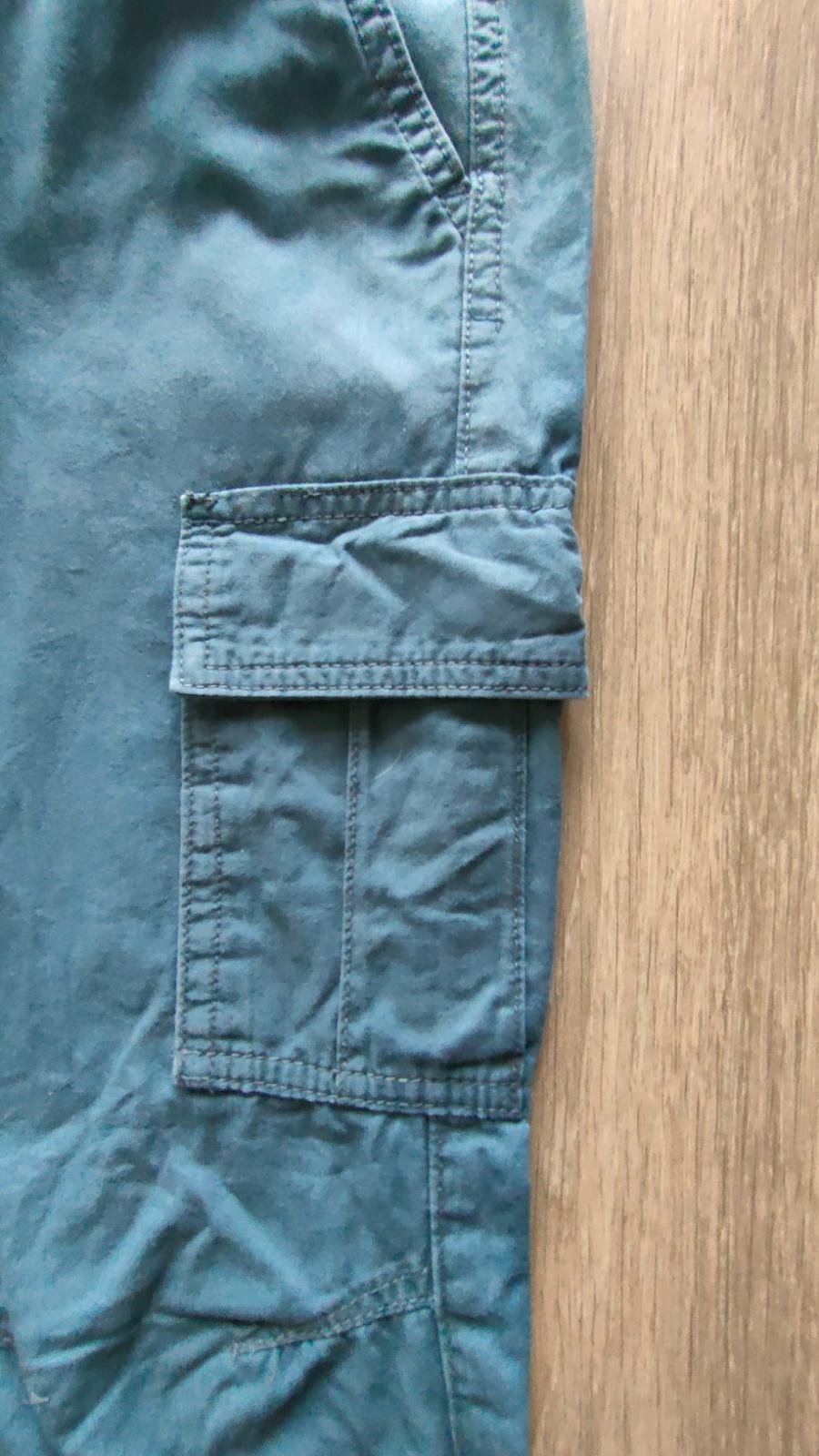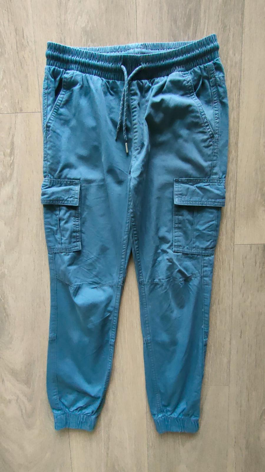 Perfektné na každodenné nosenie, či už do školy alebo na výlet. 💯% bavlna. Priedušné, ukončené gumičkou /aj na páse/, s vreckami, šnúrkami na stiahnutie, perfektné na nosenie, praktická farba, ľahká údržba. Nám super poslúžili. Nosené jednu sezónu, zachovalý stav.