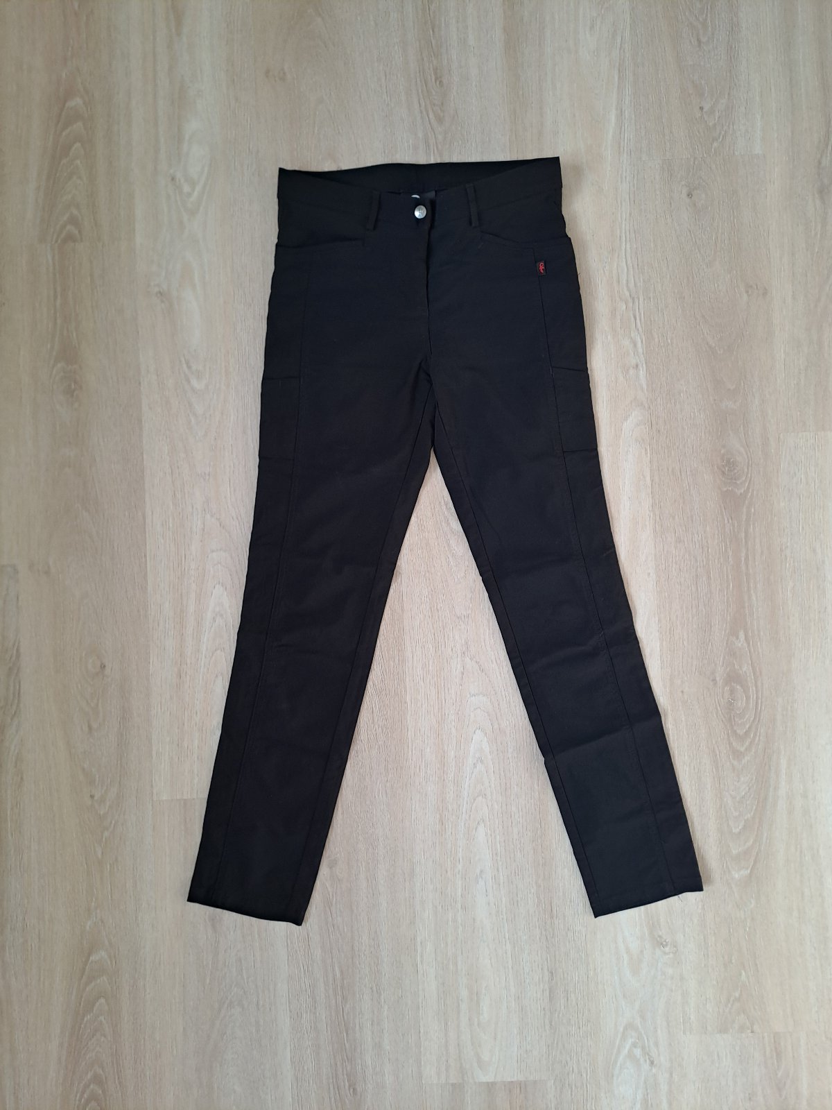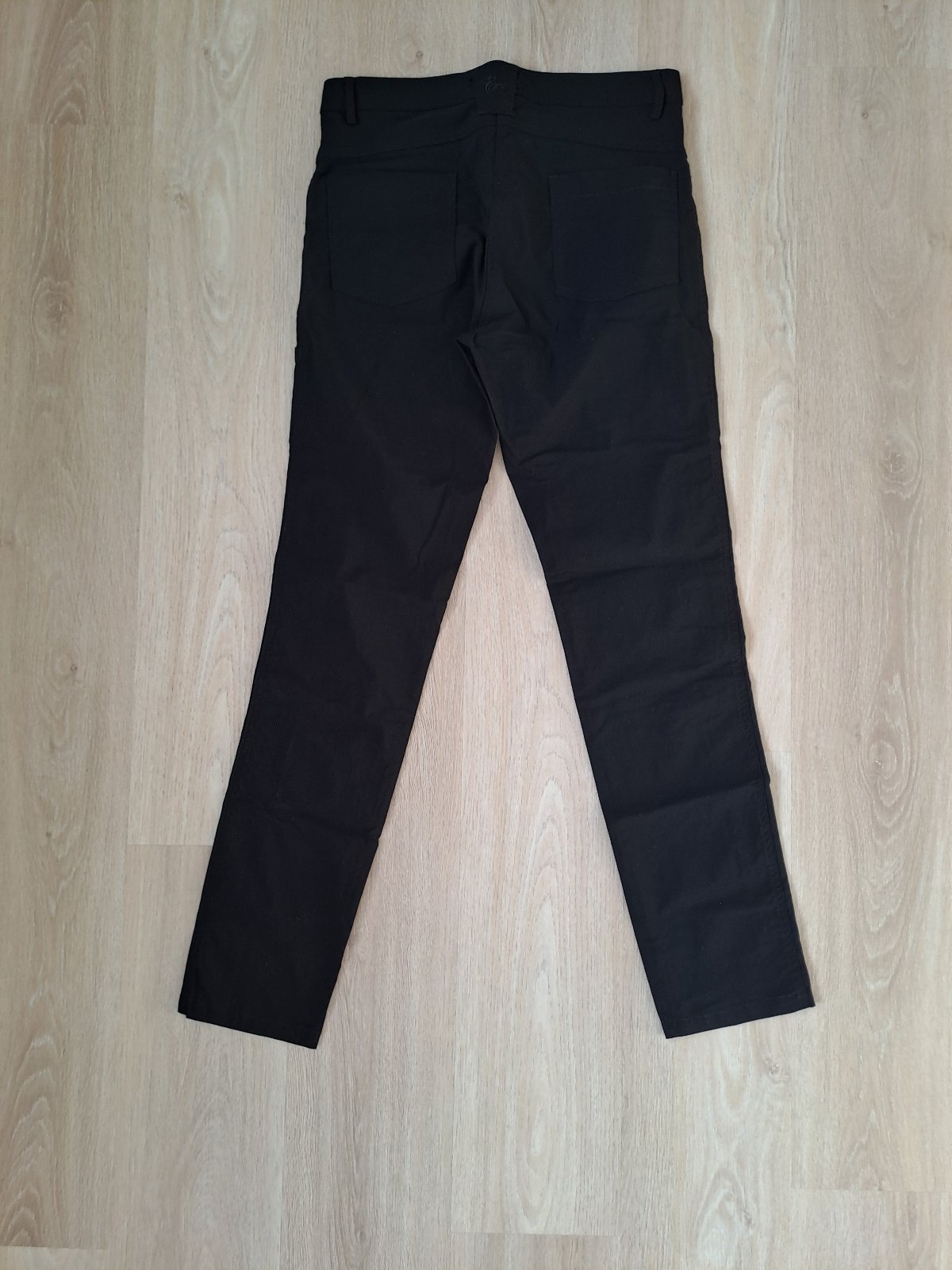 Nemajú žiadne poškodenia, sú nenosené, iba vyskúšané a opraté, pretože na výšku 177 cm sú mi trochu kratšie.