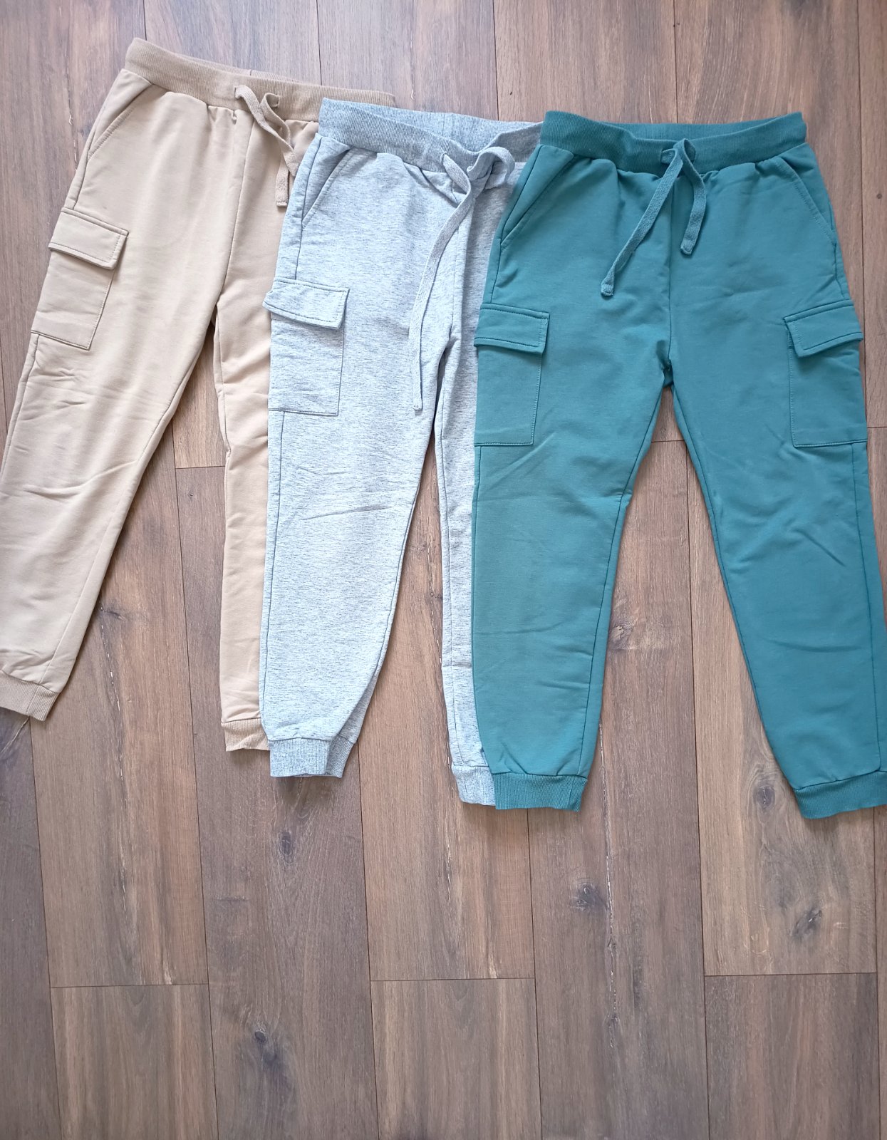 3 ks pekných tenkých (nie sú vyteplene) teplákov, syn nosil aj do školy. Všetky sú velkost 140, dĺžka 71-73 cm. Stav pekný noseny,béžové majú nad vreckom maličký fliacik,myslím že klasickým zlcovym mydlom alebo iným odflakovacom to zijde,ja som to prala len klasicky spolu a všimla som si to až po praní. Predaj aj cena spolu za všetky 3 ks.