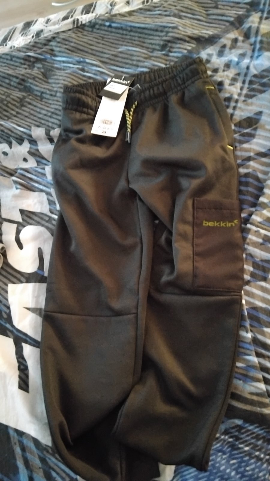 Sýta čierna farba, foťák presvetlil. Funkčné asnurka v páse, funkčné bočné vačky. Pás 2x31cm, dĺžka 75cm. Veľkosť na štítku uvedená 140, sedia na 134. Bez poškodení. Cena 3e + posta