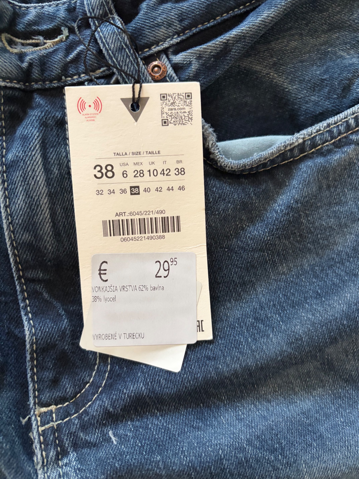 Predám dámske rifle značky Zara v dobrom stave. Veľkosť je 38. Sú modrej farby, majú obyčajný strih. Pošlem na dobierku, dobierku pripočítam k cene.