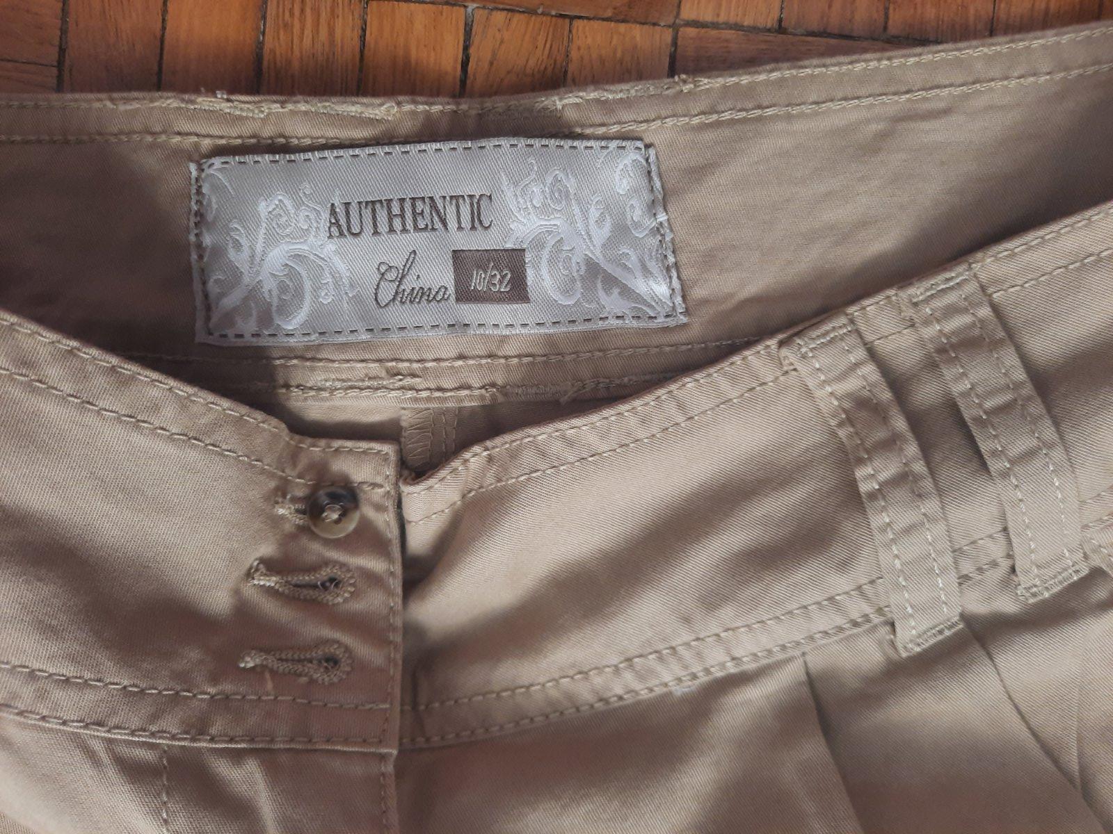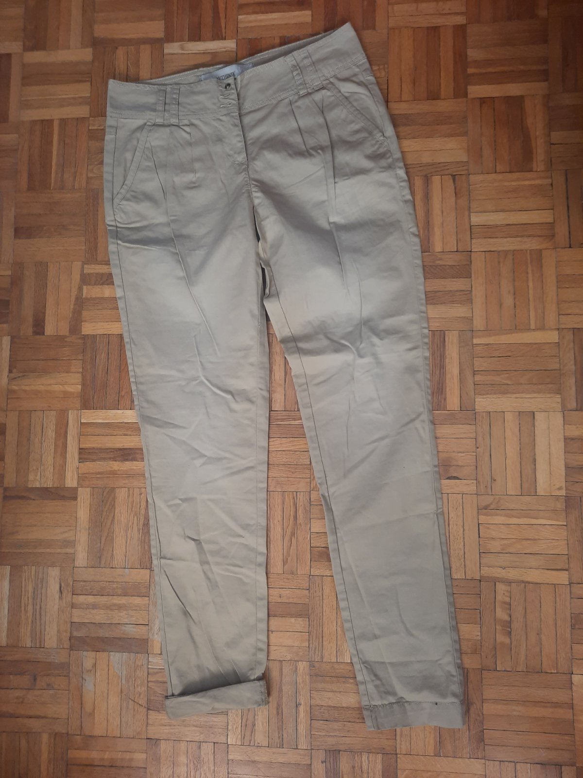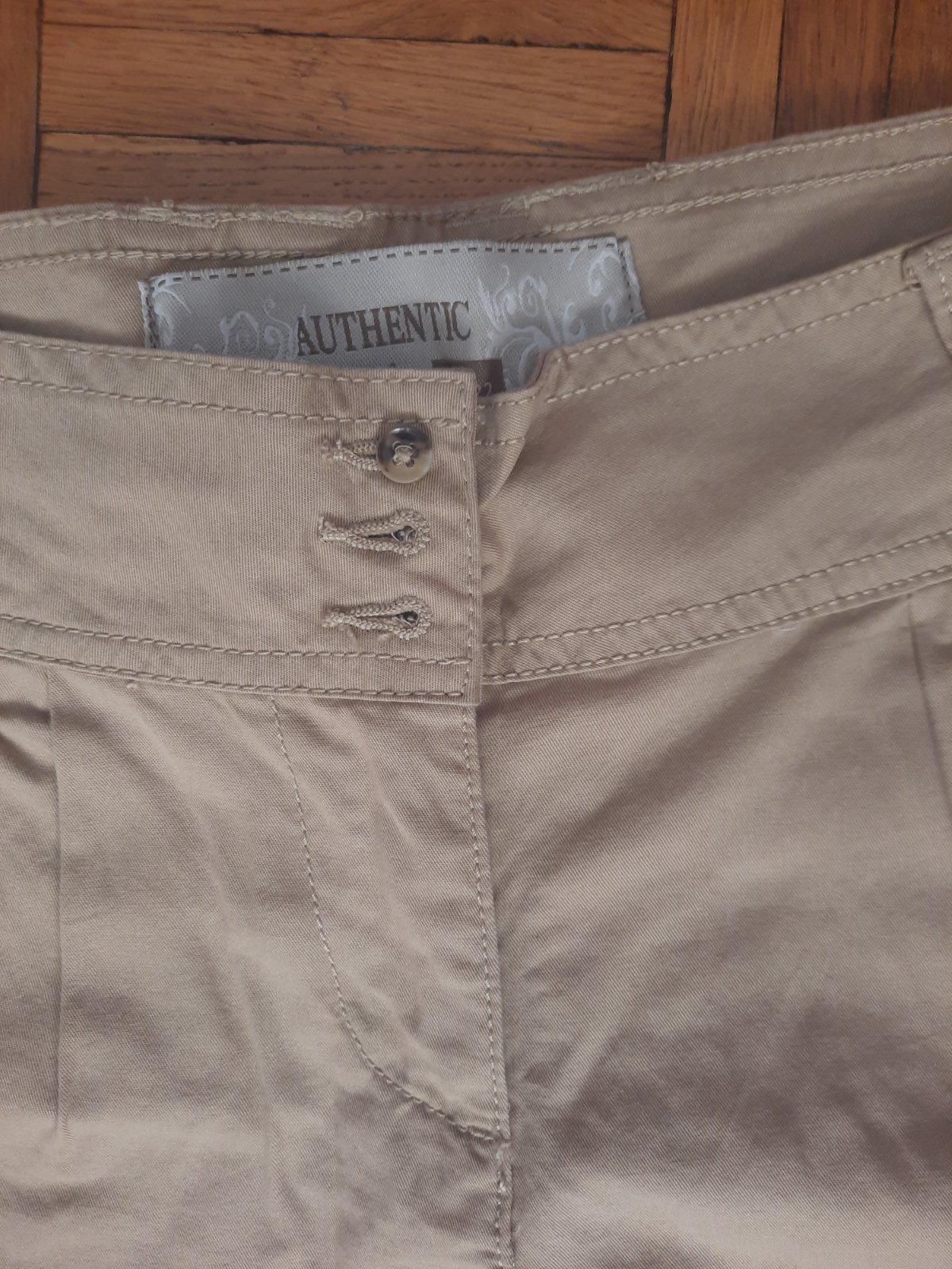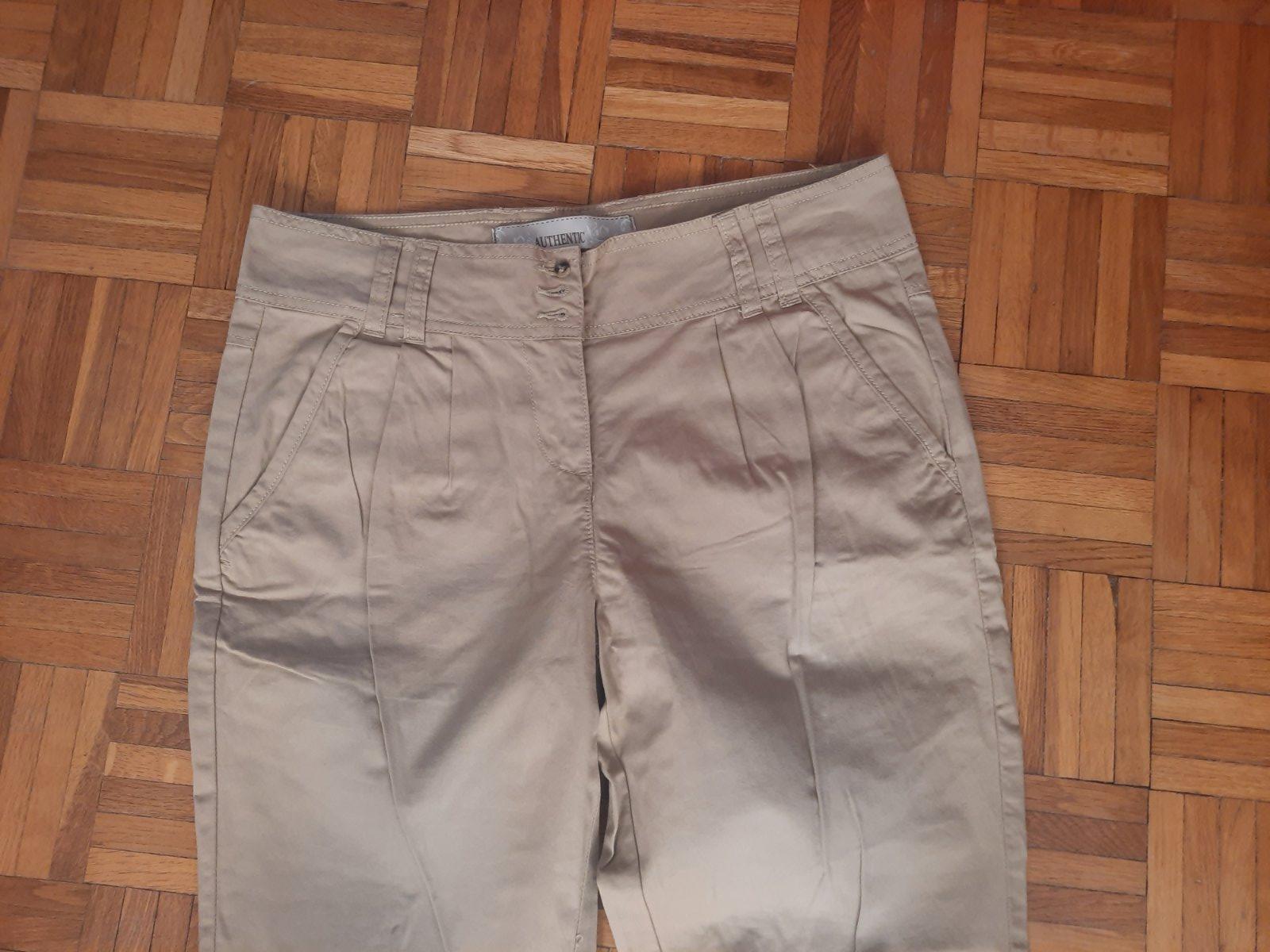 Super béžové dámske nohavice- boli iba vypraté (mne už veľké). Vzdušný materiál. Zapínanie na 3 malé gombíky+ zips. Funkčné vačky vzadu aj vpredu. Dajú sa nosiť aj vyhrnuté.