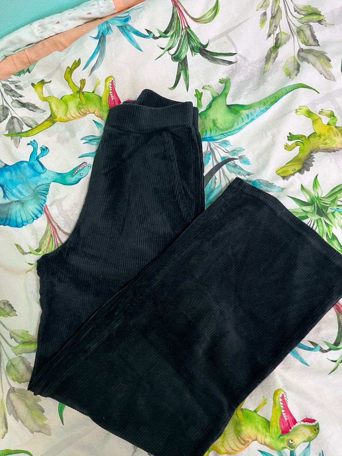 nohavice z imitácie kože, voľné nohavice, zvýšený pás, vzadu aj vpredu vrecká, zapínanie na cvok a zips, v 100% stave, minimum použité, po jednom dieťati, kúpené nové rozmery: pás-32 cm/nastaviteľ...