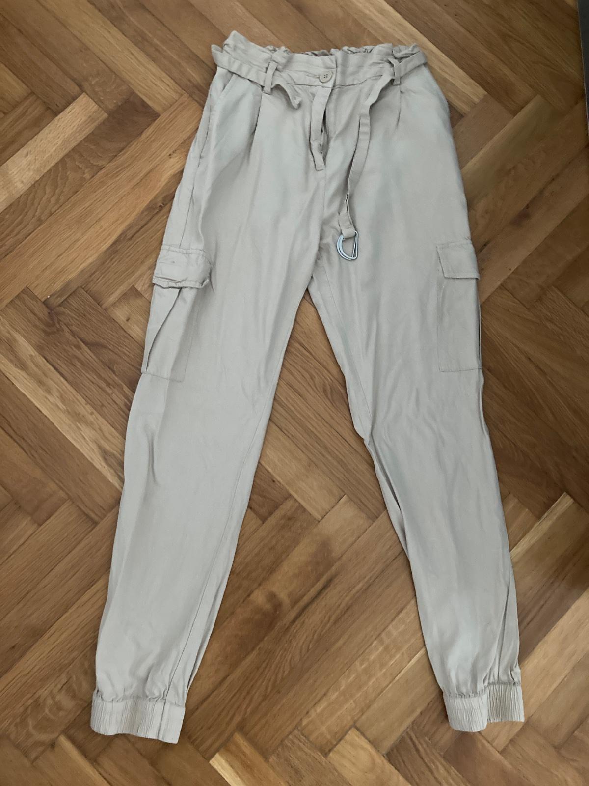 Ponúkam málo nosené, veľmi pohodlné, dievčenské nohavice. Sú z mäkkého materiálu, v páse na gumu, dole do patentu. Sú ľahké, skôr teplá jar/jeseň alebo leto. Majú vrecká. Farba je čierna, s drobný...