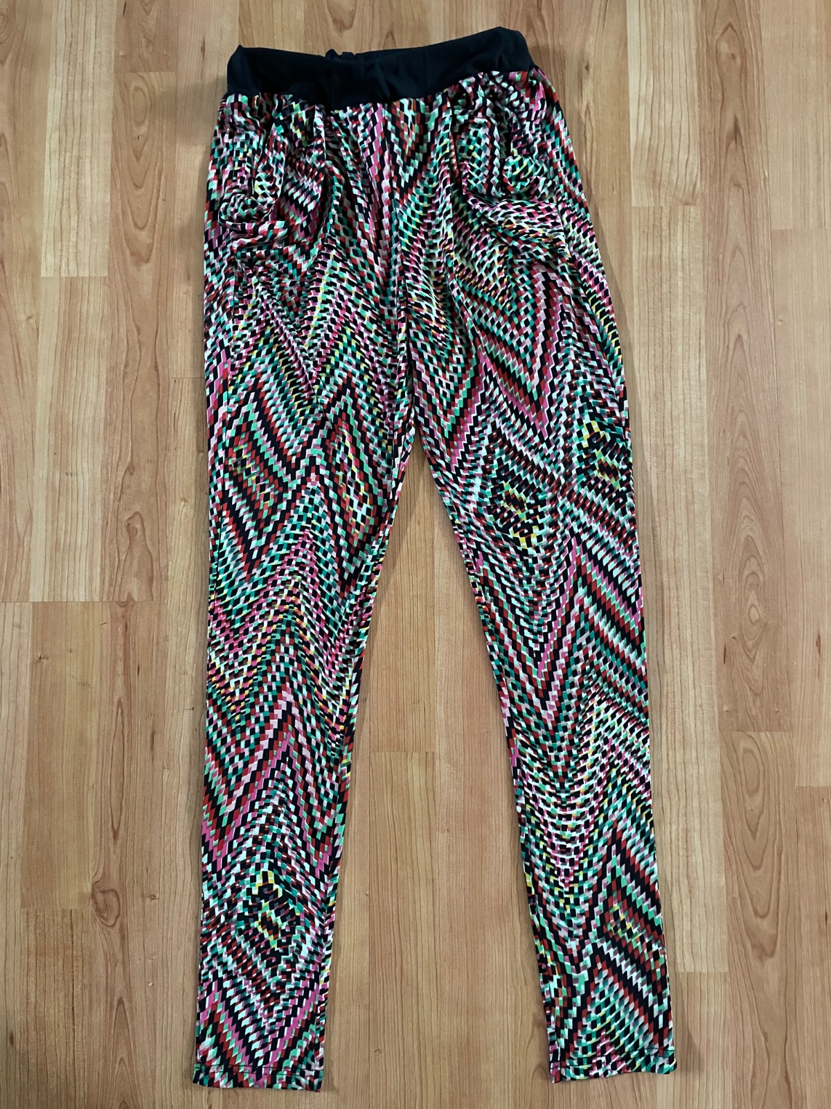 Top stav,letné vzorované nohavice z tenkého materiálu s pekným vzorom, s vreckami, v páse je guma, materiál: 97% polyester,3% elastan