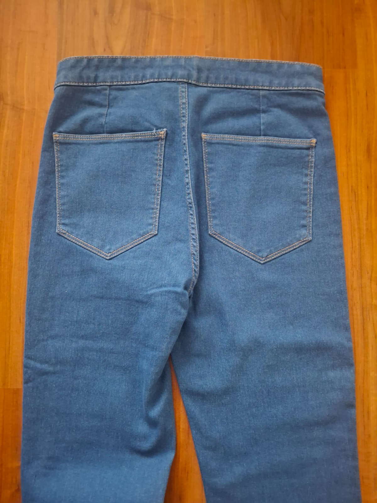 Nenosené iba opraté. Sú elastické a majú vysoký pás.Farba je skôr ako na druhej fotke.
