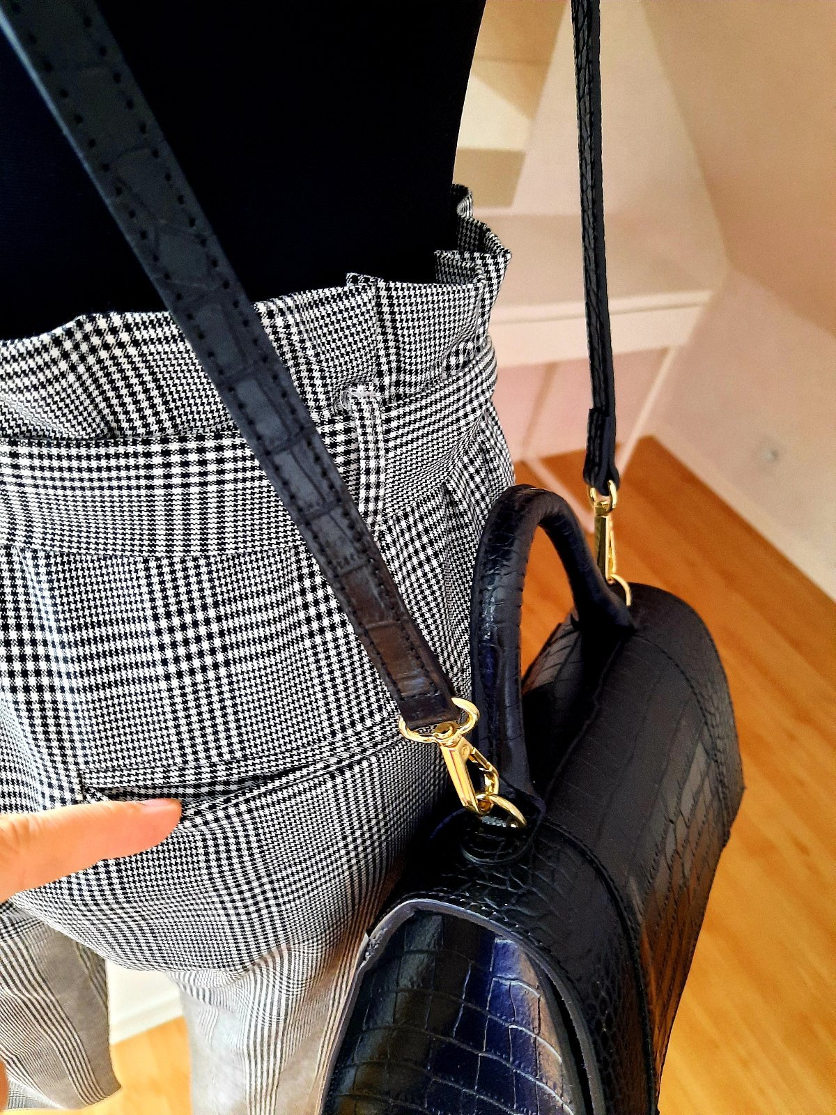 Nosené no vo veľmi dobrom stave, veľkosť udaná S, šírka40 cmx2 a dĺžka 90cm Kombinácia čiernej a bielej