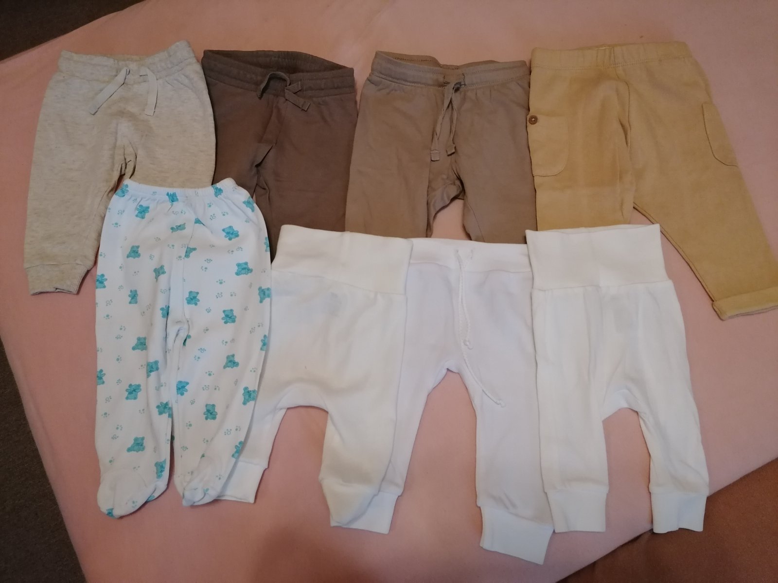 Tepláčiky v peknom nosenom stave. Žiadne zmolky, dierky, fľaky. Pri rýchlom jednaní možná zľava. Kus 2,99€.