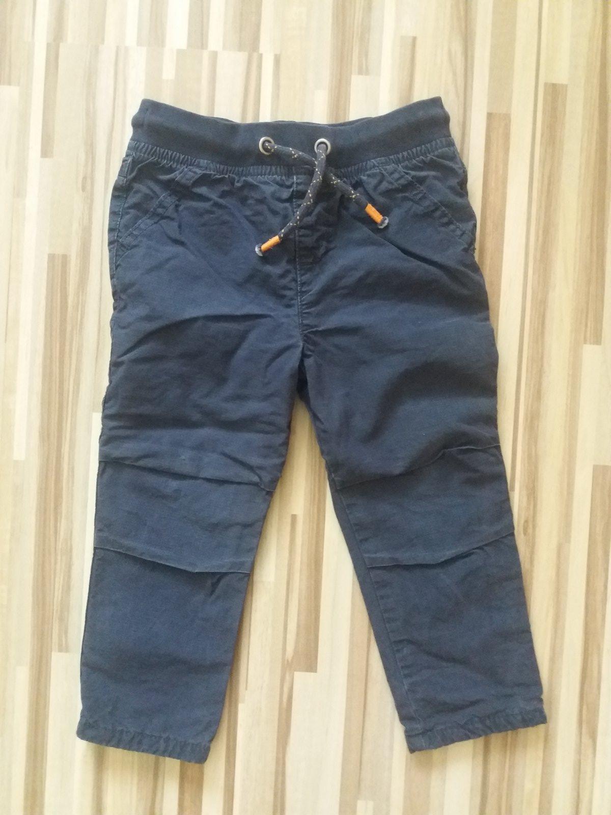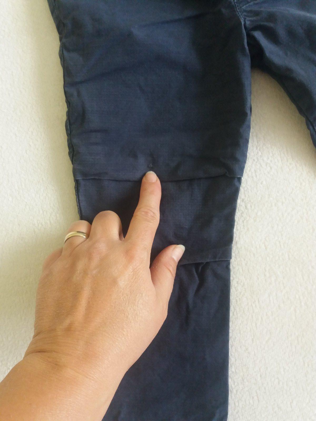 Frajerské podšité nohavice, žiadne žmolky, farba pekná, len malú začínajúcu dierku som si všimla nad kolenom (viď foto), nosili sme ich veľa, no neprerástla do veľkej dierky. Veľkosť je písaná 12-18 M. Pri cene zohľadnené