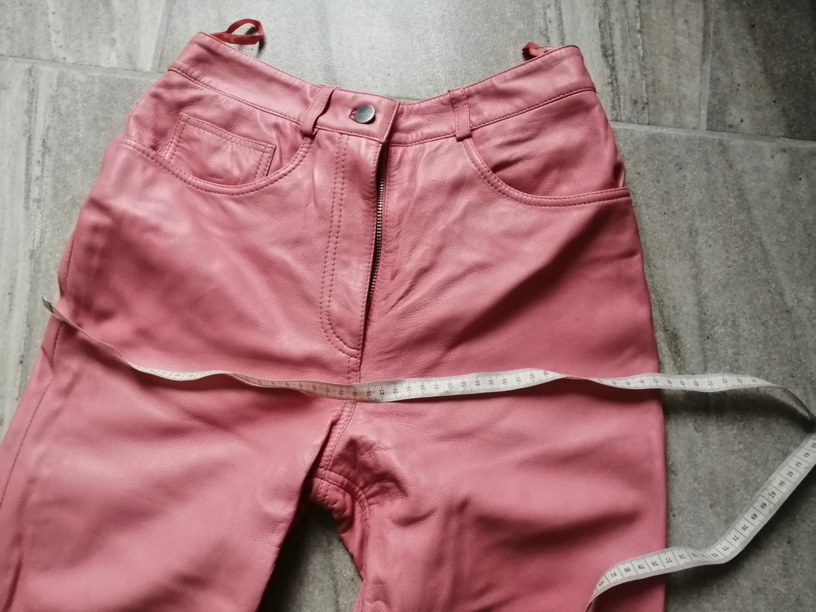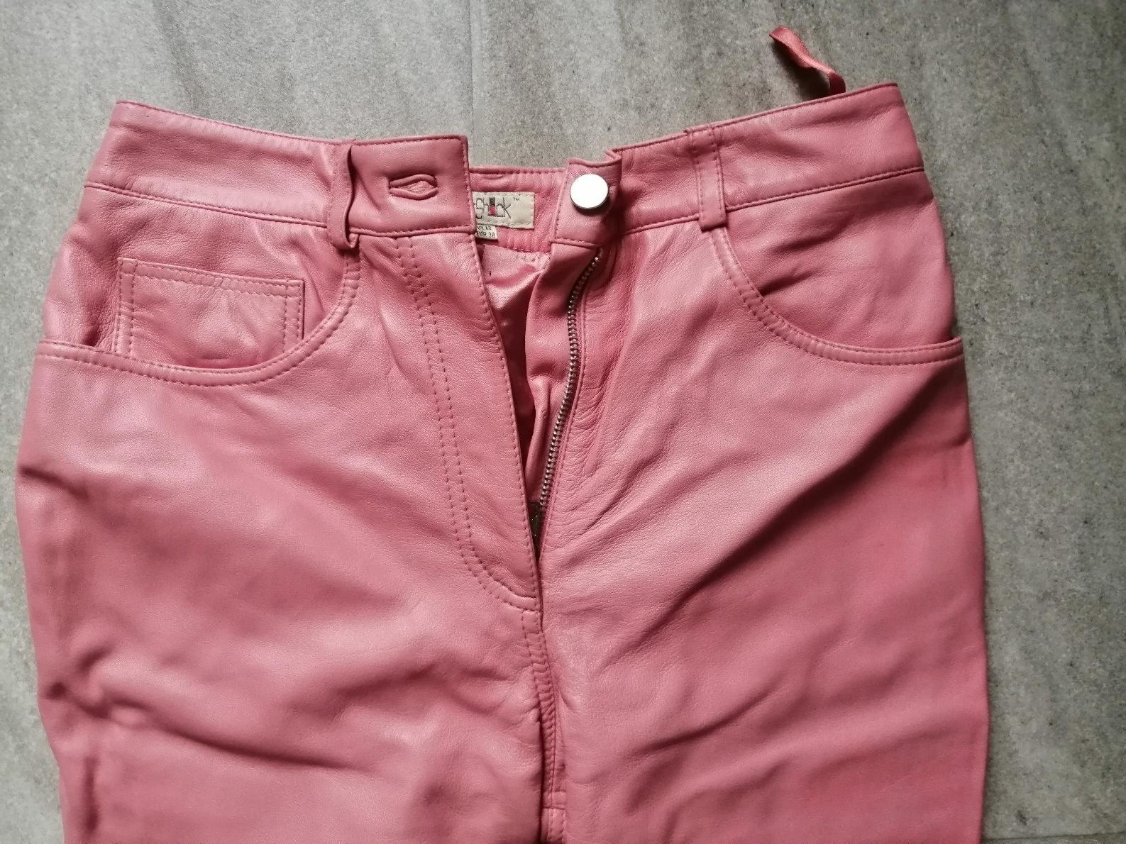 Luxus ružové kožené nohavice After Shock, v36-38