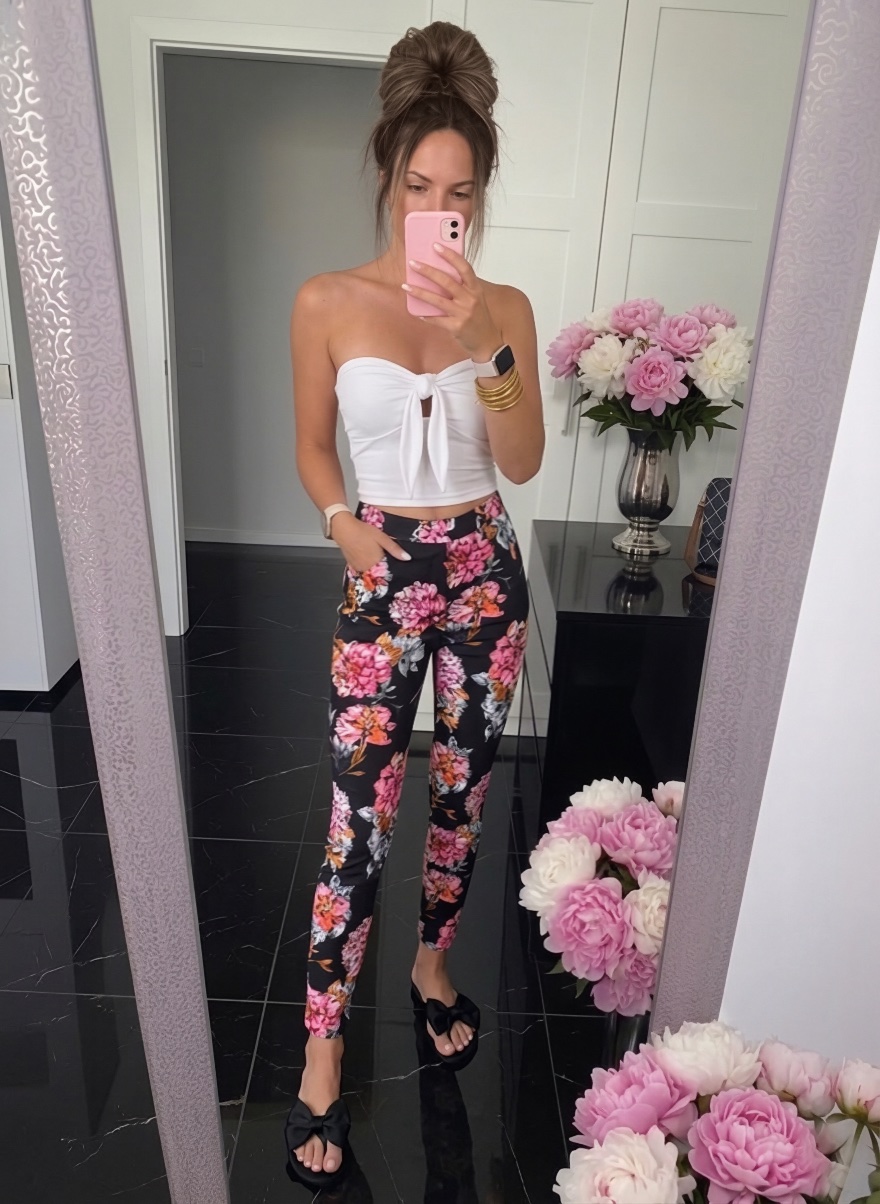 Elegantné nohavice s kvetmi