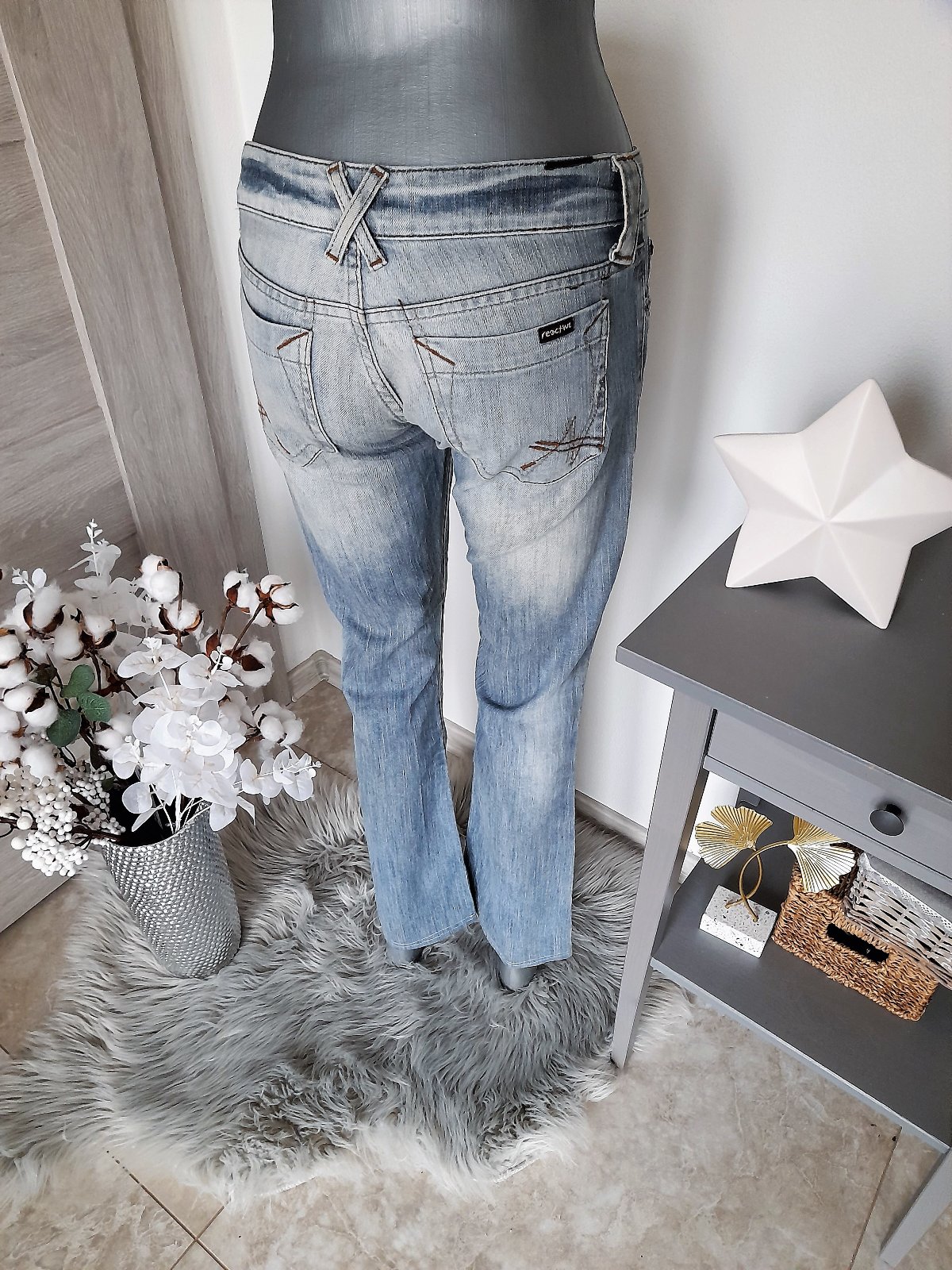 nevymieňam!!materiál-riflovina,veľkosť S/M-farba taká zvláštna šedo-modrá,neviem ani presne definovať,,asi 2 x oblečené,bez poškodení,nie sú elastické,sú hrubšie-dĺžka 98cm,boky 2 x 42cm,pás 2x 36cm,predný sed 18cm,zadný sed 25cm,.kuk aj na iné moje inzeráty