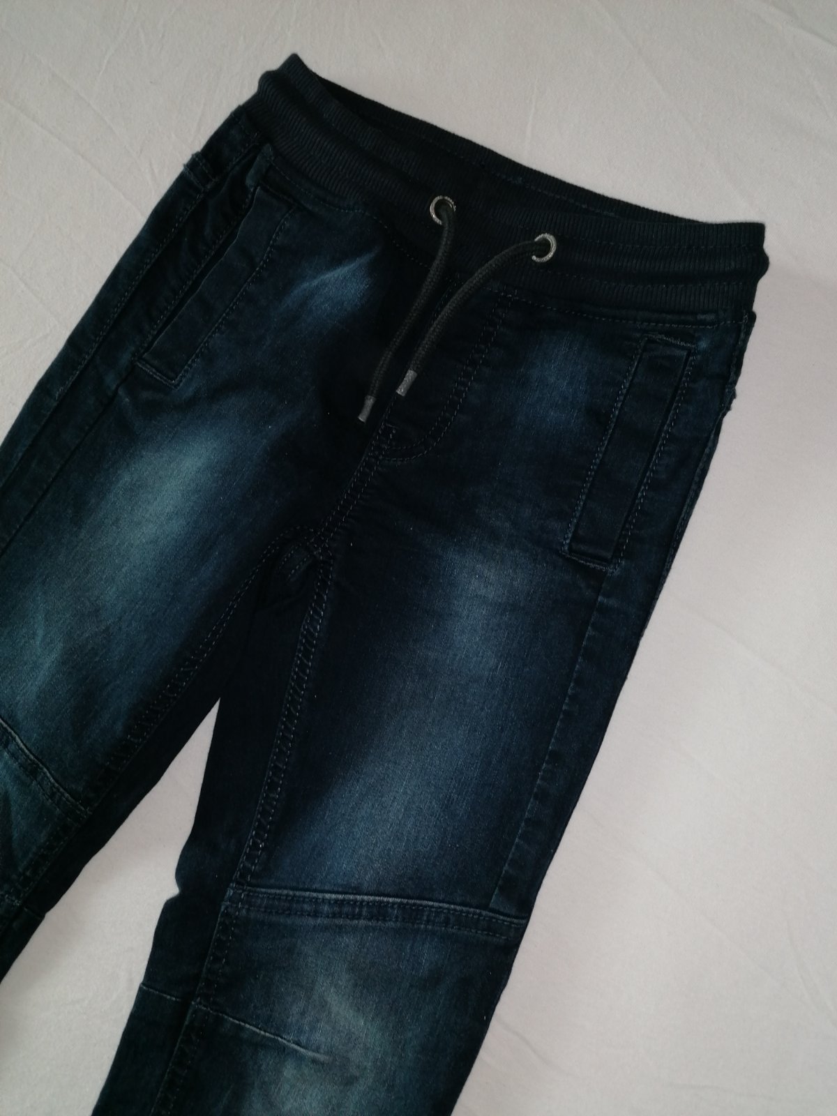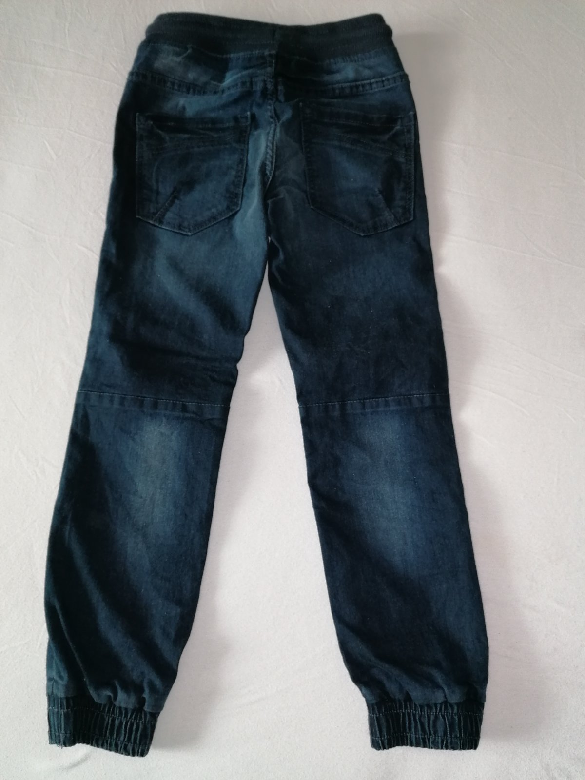 Vysuchane kolienka ale inak nemaju poskodenia. Pás je funkčný na oboch. Tie modré su z tesca a čierne su h&m. Cena spolu.