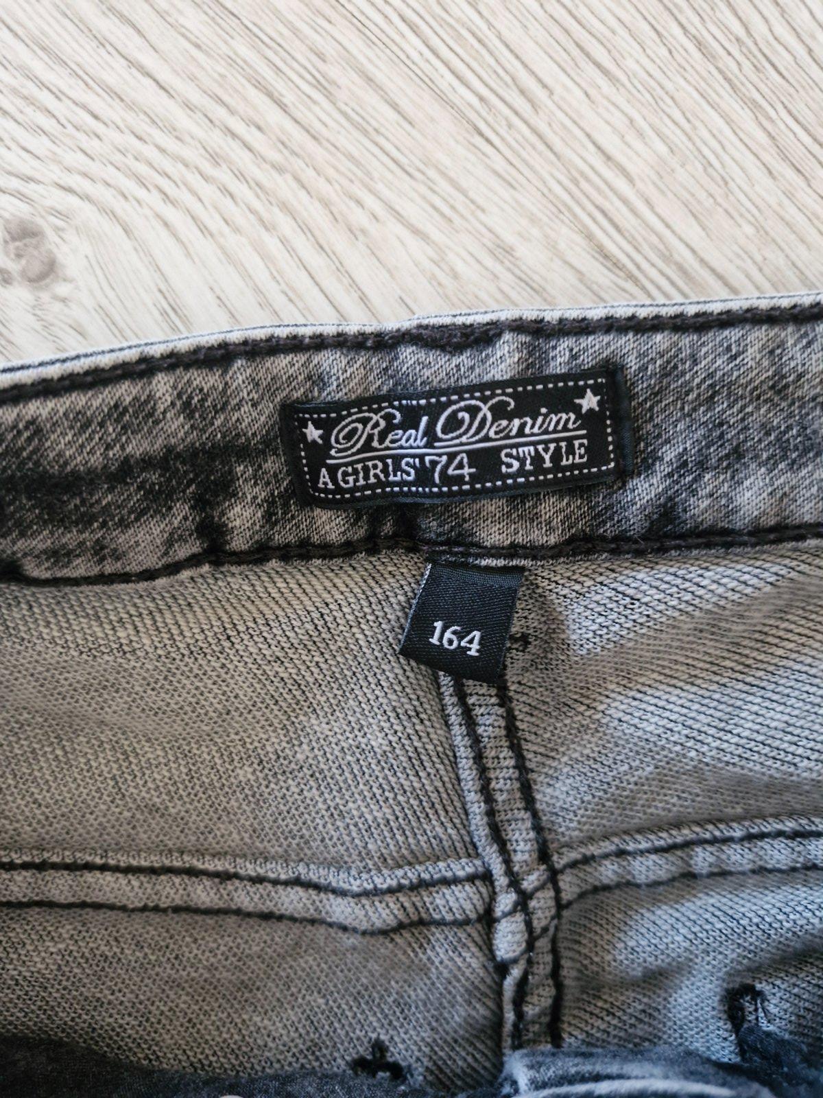 pohodlné rifle pre dievčatá alebo dámy, píše veľkosť 164 ale riaďte sa rozmermi. Celková dĺžka je 98 cm, pás je 38,5 x 2 cm, výška sedu je 20 cm a dĺžka od sedu dole je 78 cm. Rifle sú mierne elast...