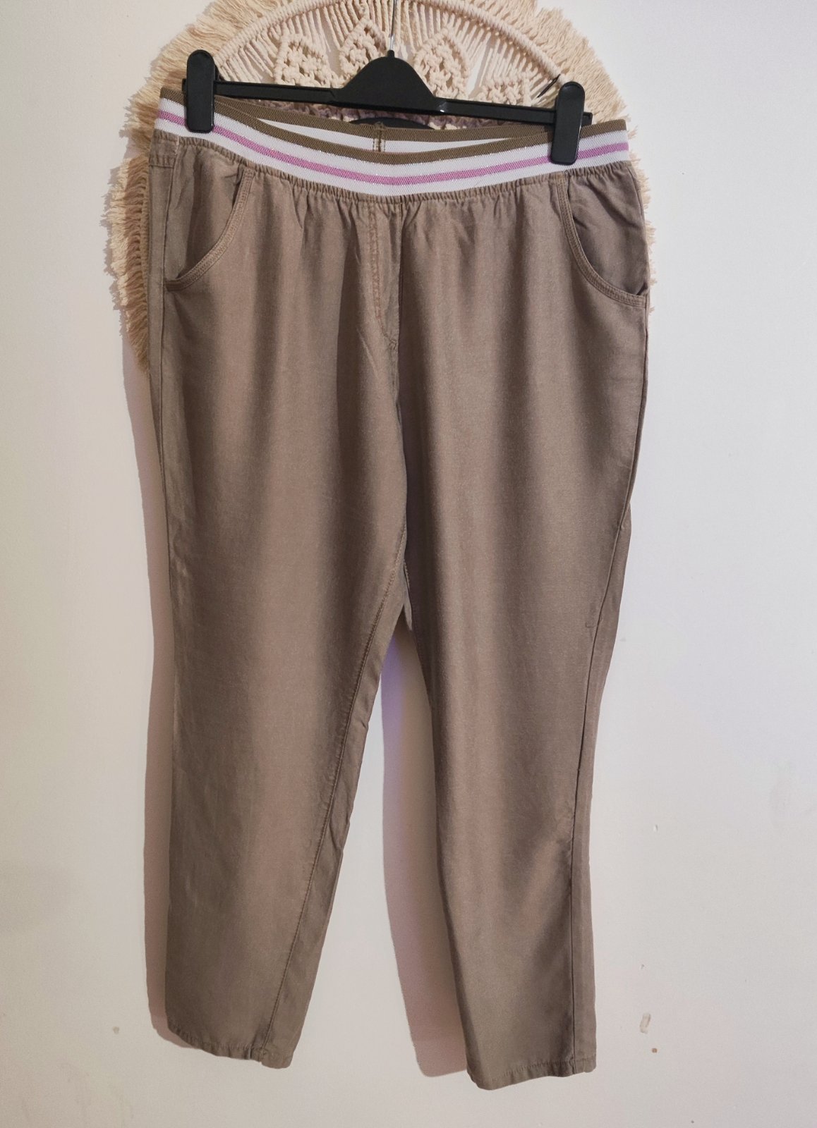 nosené nohavice, bez poškodení, farba je svetlo hnedá, k nohaviciam je aj opasok (viď foto) rozmery: pás 82cm, dĺžka 98cm, od rozkroku dole 76cm, dĺžka opaska 86-94cm cena 1,5€ + poštovné