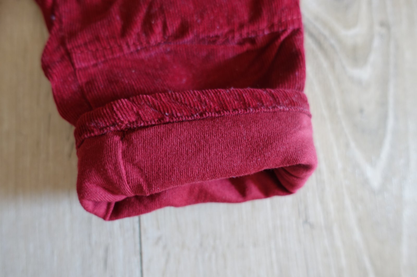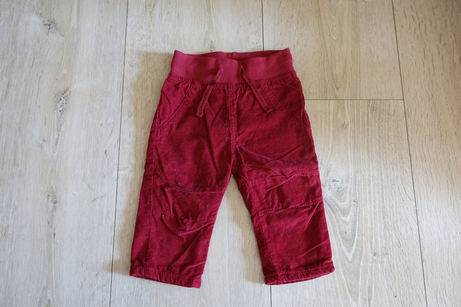 Predám krásne menčestrové nohavice tmavej až vínovo červenej farby vo veľkosti 68. Sú veľmi mäkučké, príjemné na nosenie. Sú podteplené ešte bavlnenou látkou. Mali sme ich 1x, nestihli sme ponosiť, kúpili sme neskoro. Sú top stav. Šnúrky sú plne funkčné. Majú celkovú dĺžku 38,5 cm a šírku pásu 21 cm. (V06)