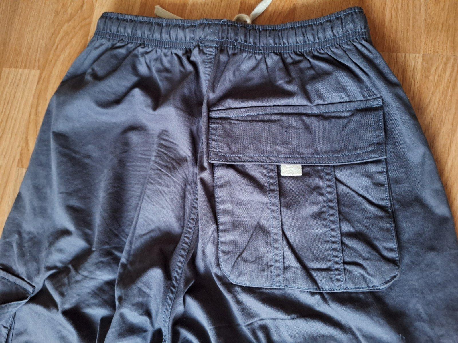 Gate nosené 1 sezónu, tenká balónovina, v páse guma a tiež šnúrka, aj naspodu nohavíc je sťahovacia guma. Syn je štíhly