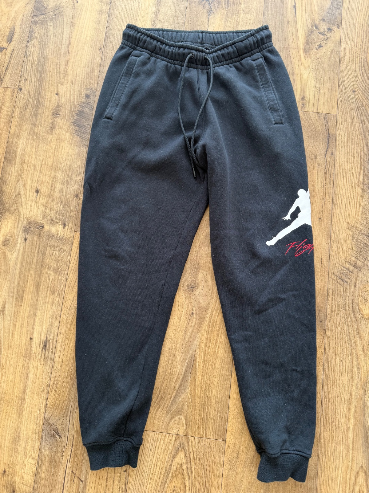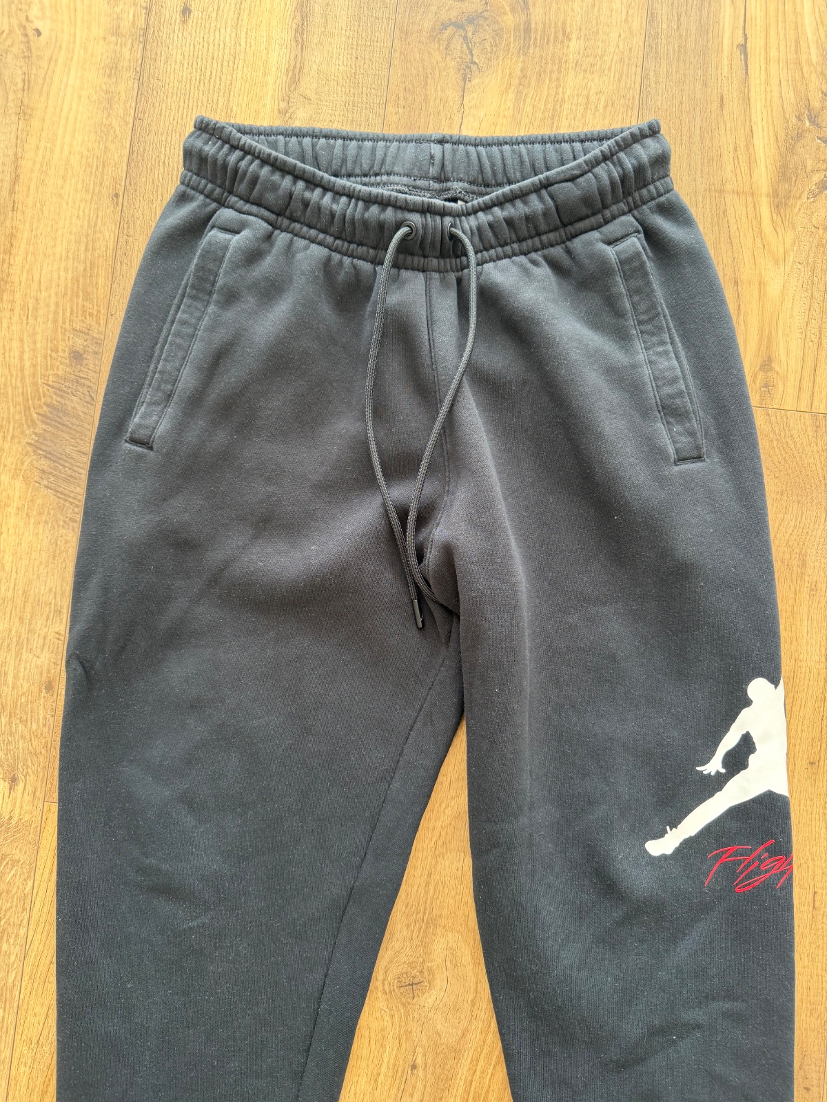 Tepláky s mierne znizenym sedom zn. Jordan, veľkost S (aj zodpoveda). Su nosené s veľa ďalšimi, bez poškodeni, farba OK. V pase je gumička a funkčna snurka, maju dobry strih. Urcite odporucam. Dl...