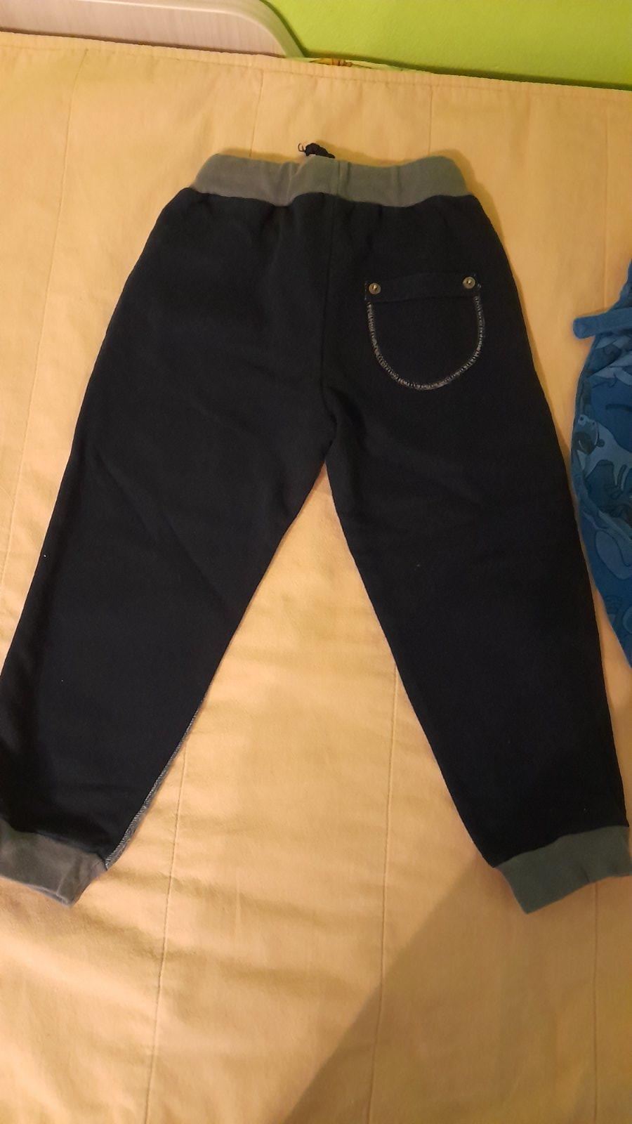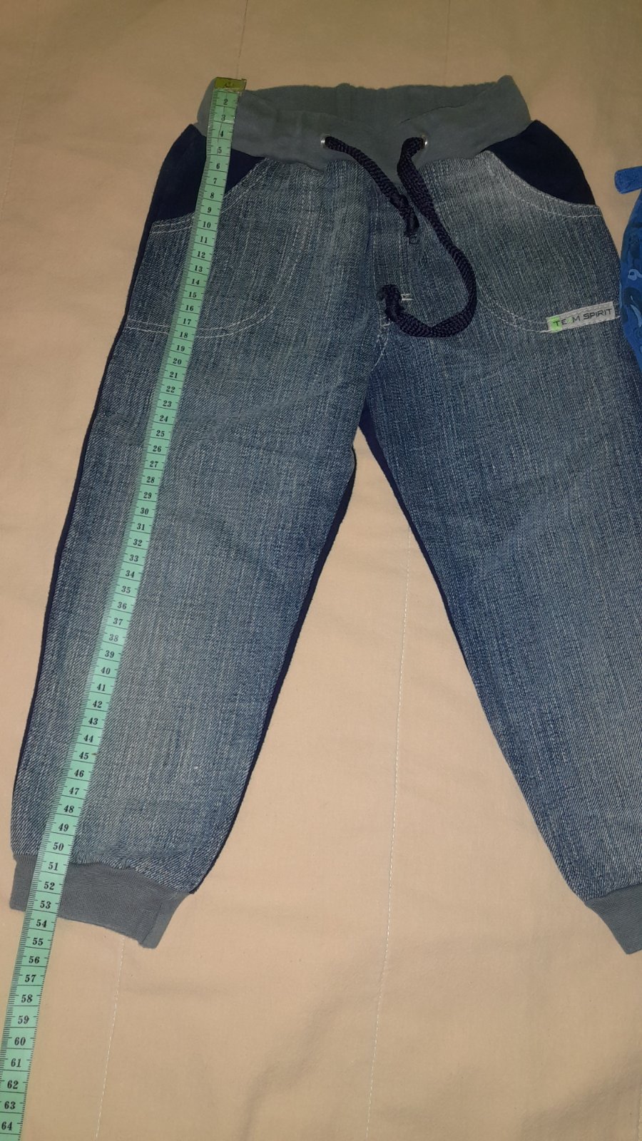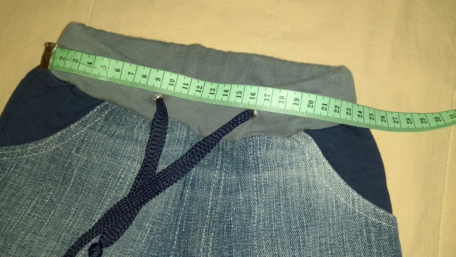 Pohodlne riflicky, spredu riflovy vzhlad, zozadu teplakovy vzhlad. Zn. MODELKO, 100% bavlna. V pase funkcna snurka. Rozmery vo foto. Vyborny stav, bez poskodeni. Uvedena vel. 104, ale rozmerovo skor 98.