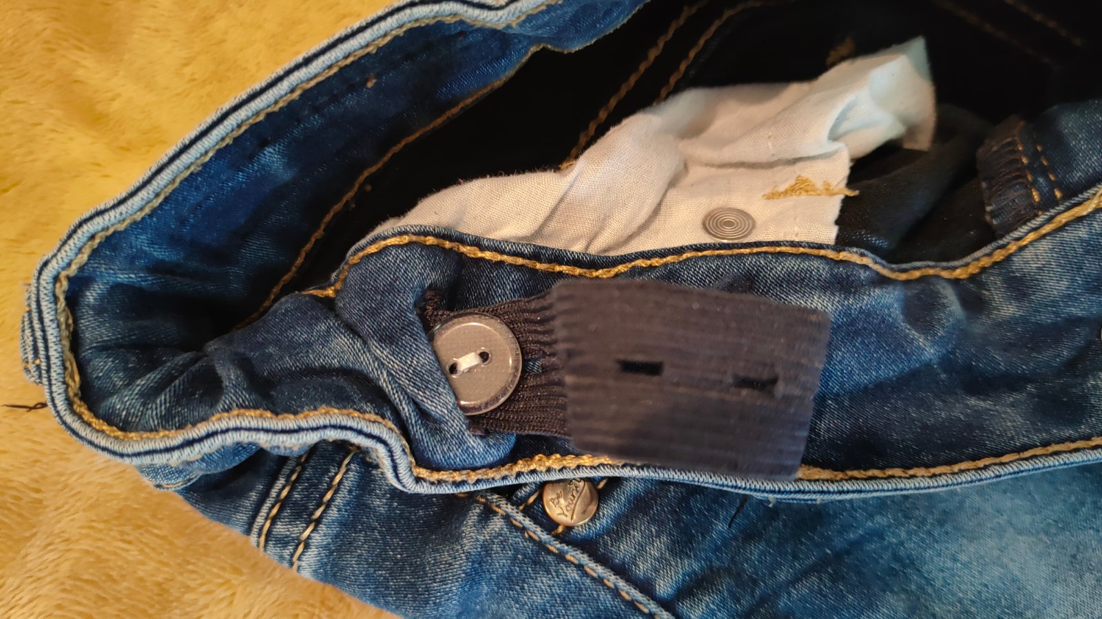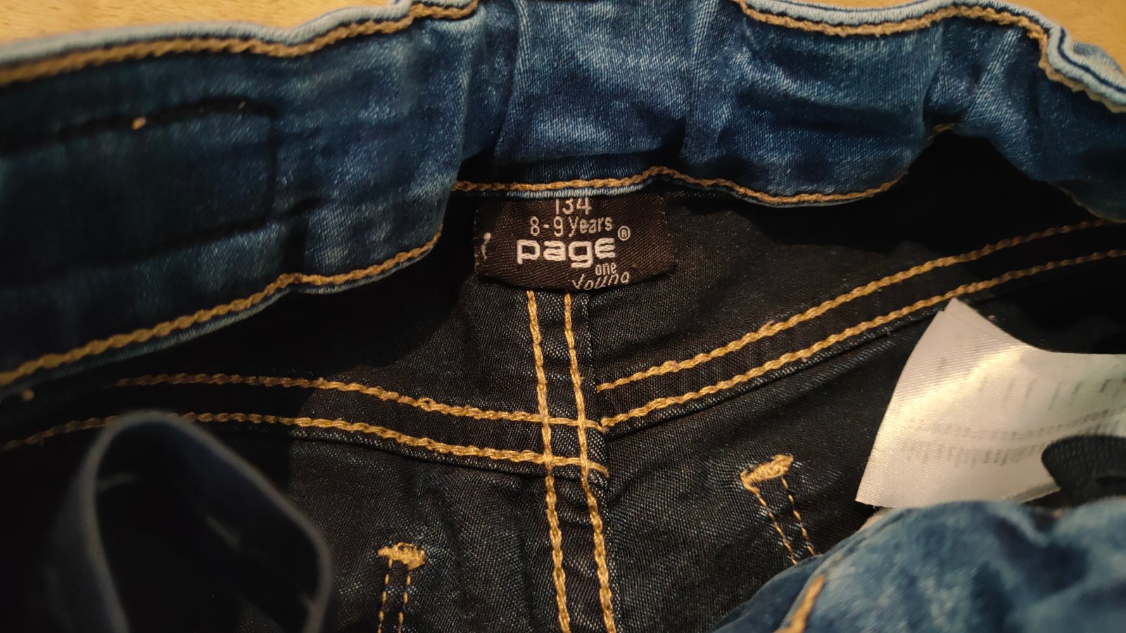 Veľkosť uvádzaná 140 ale skôr 134,nastaviteľný pás , na pr.kolene roztrhnuté , ale tak sme už kupovali,výborný stav,dĺžka = 78 cm