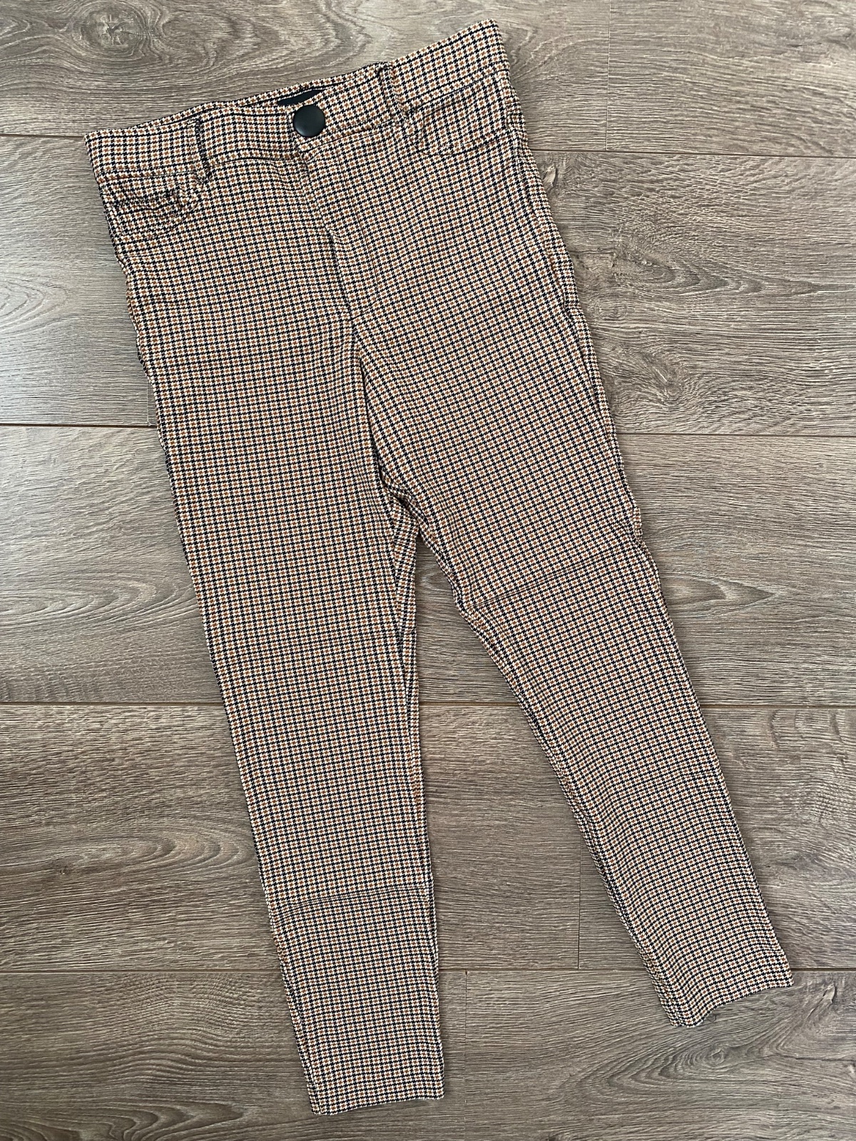 Perfektne pruzne nohavice s kohutou stopou, velmi pohodlne, teplejsie, vhodne na jesen/zimu. Sadnu aj M.