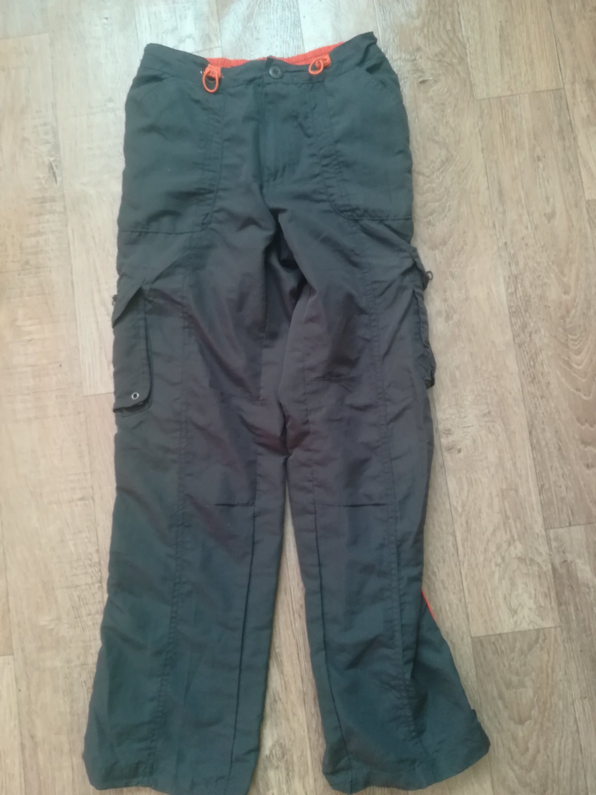 Nosené v dobrom stave, su tenke nemaju podsivku, ale vela vreciek. Su vhodne na letnu turistiku.