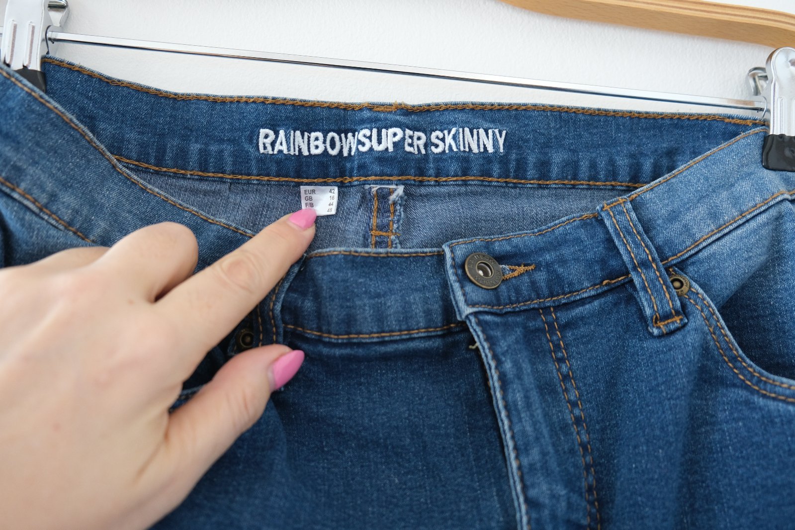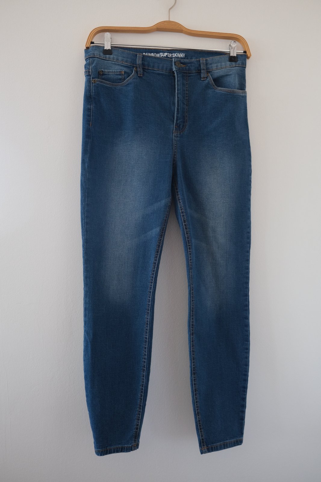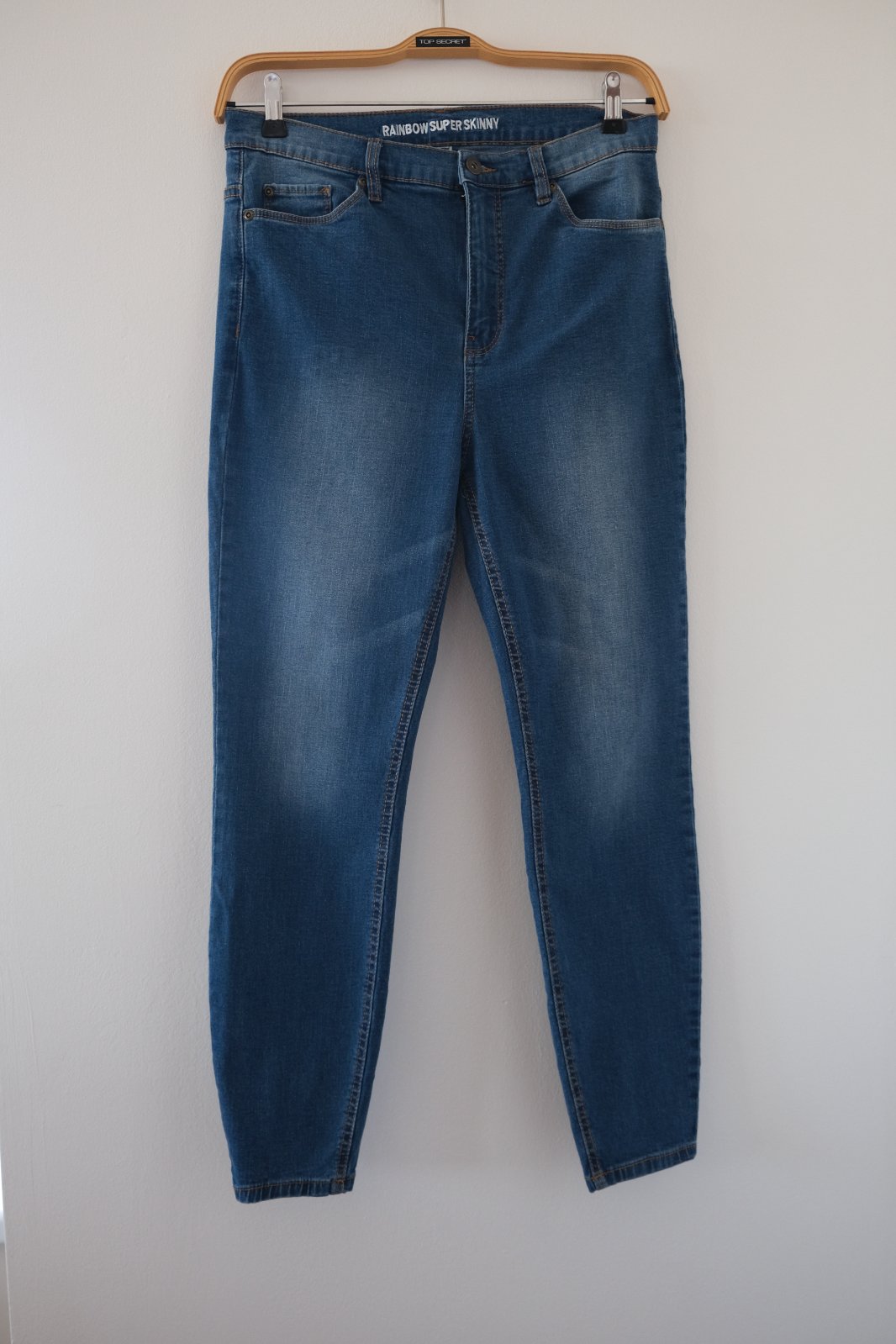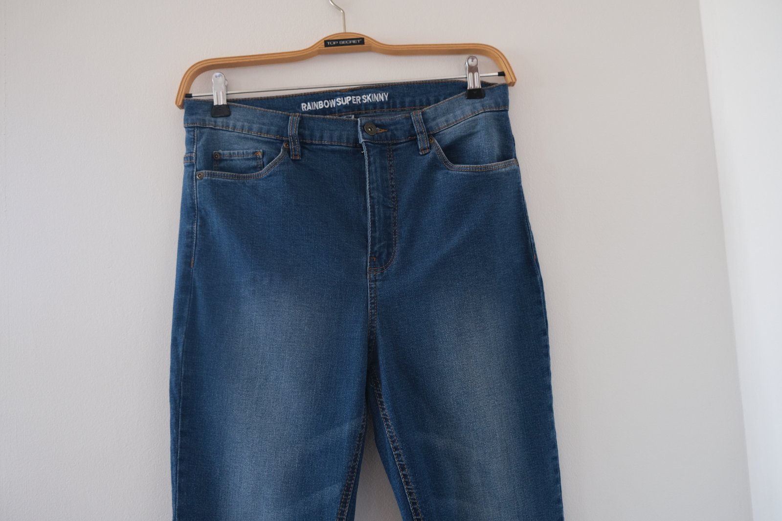 Strečové skinny tenšie rifle, stredná výška pásu modrá denim