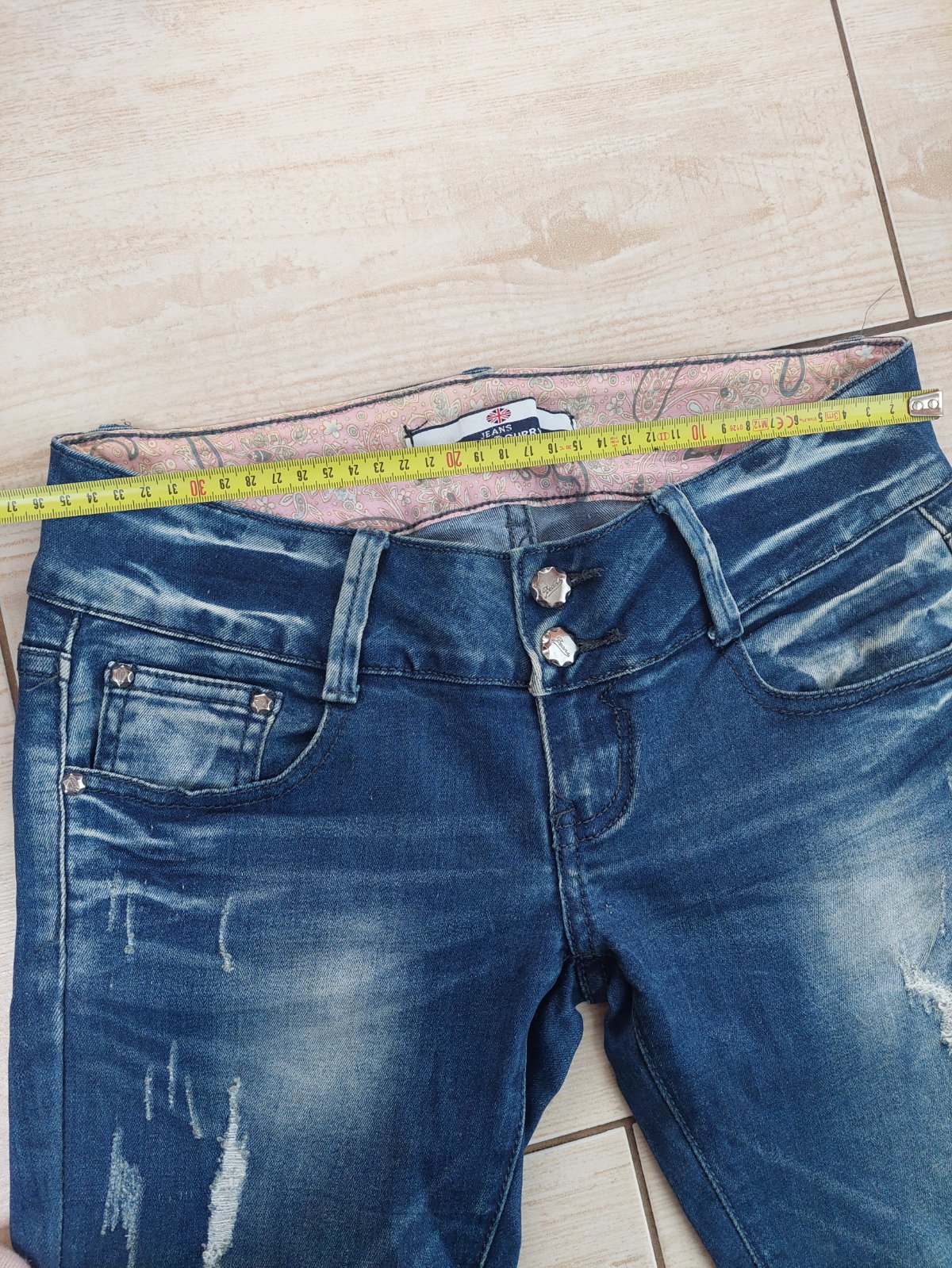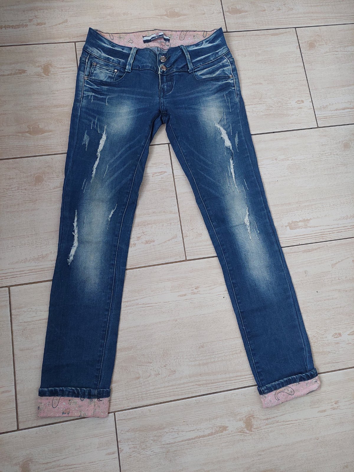 Originálne rifle Gaudi, s vyšúchaným vzorom vn.dl. 72,5cm vonk.dl. 94cm š. 34,5+ 41cm predný sed 20cm zadný sed 30,5cm