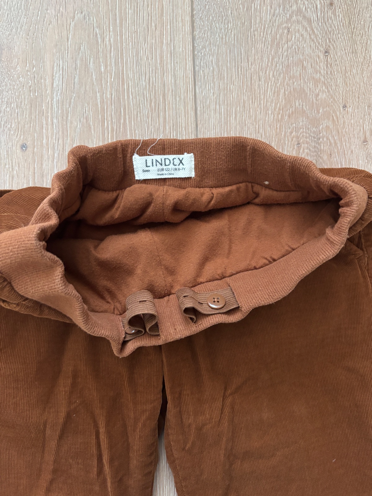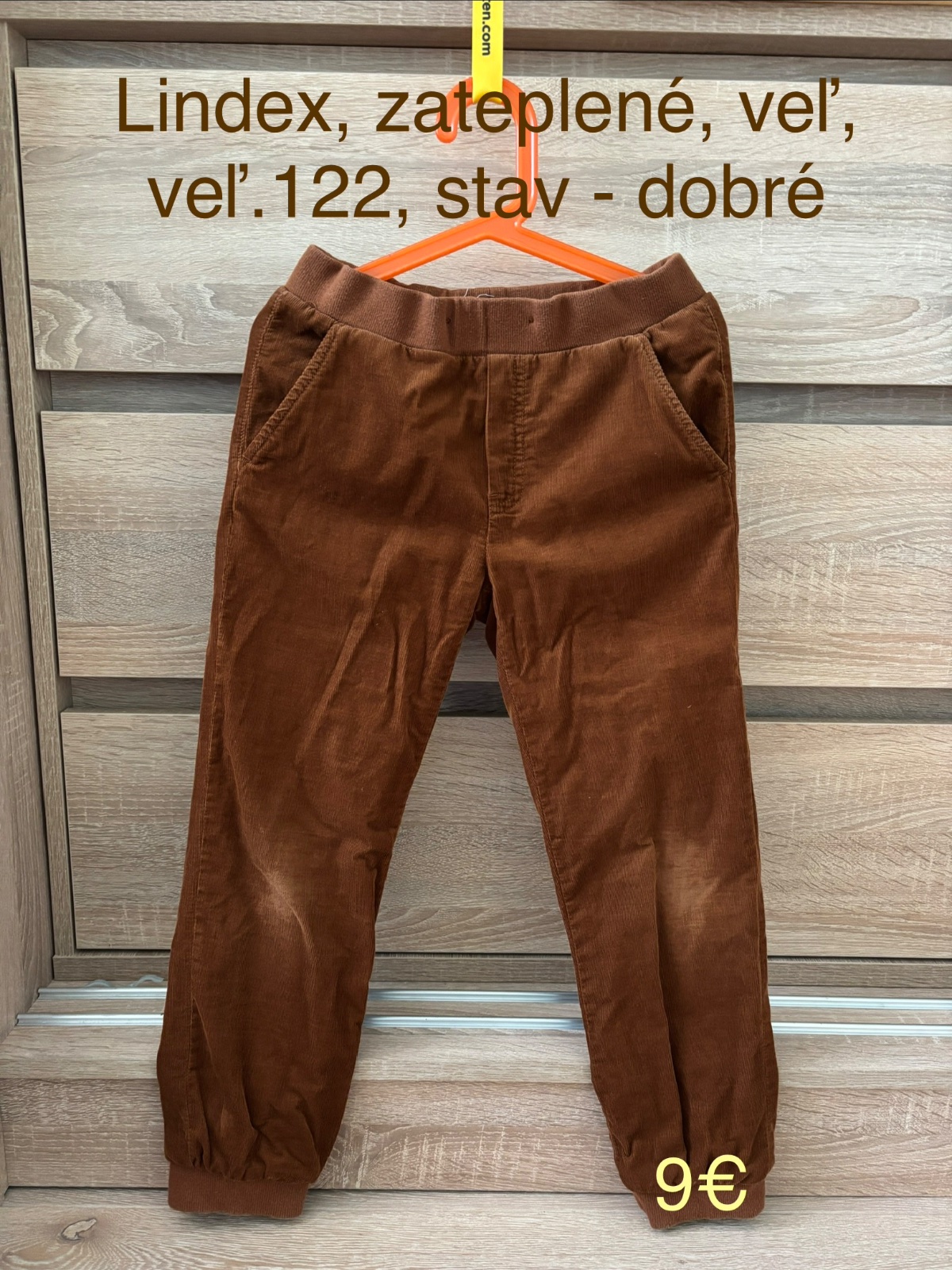 Výborné bavlnou podšité menčestráky zn. Lindex, veľ. 122.