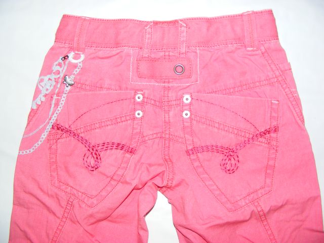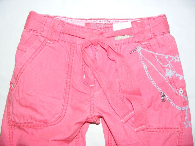 Veľkosť uvedená 128, premerajte: dĺžka 77 cm, vnútorná dĺžka 56 cm, pás max 33 x 2 cm (na menší sa dá stiahnuť regul. gumou).
