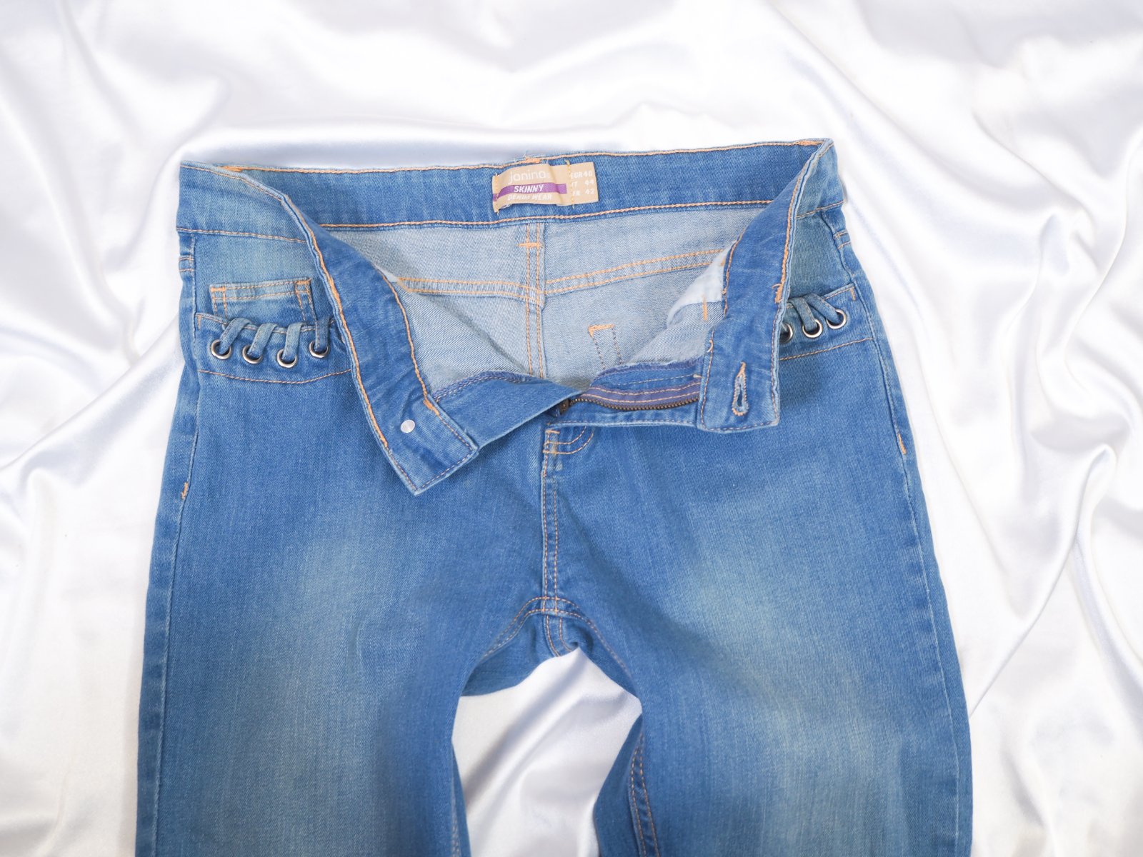 Kvalitné dámske rifle, zapínanie na zips a gombík, všité vrecká, materiál 98% bavlna, 2% elastan, super stav.
