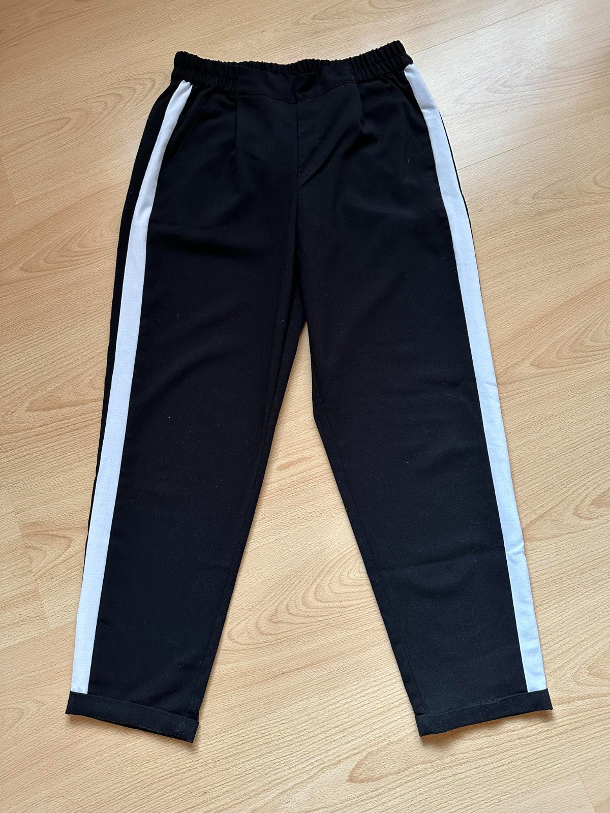 Predám párkrát nosené čierne nohavice s bielymi pruhmi značky SINSAY vo veľkosti M.