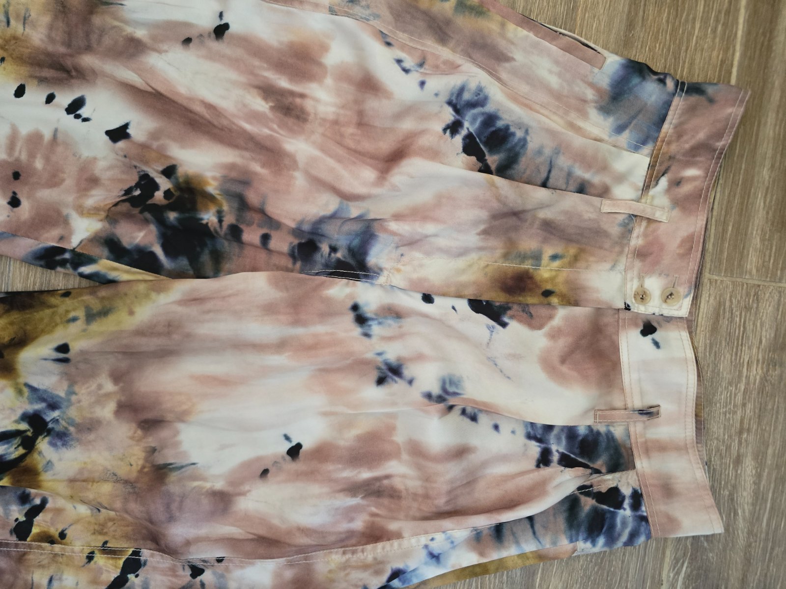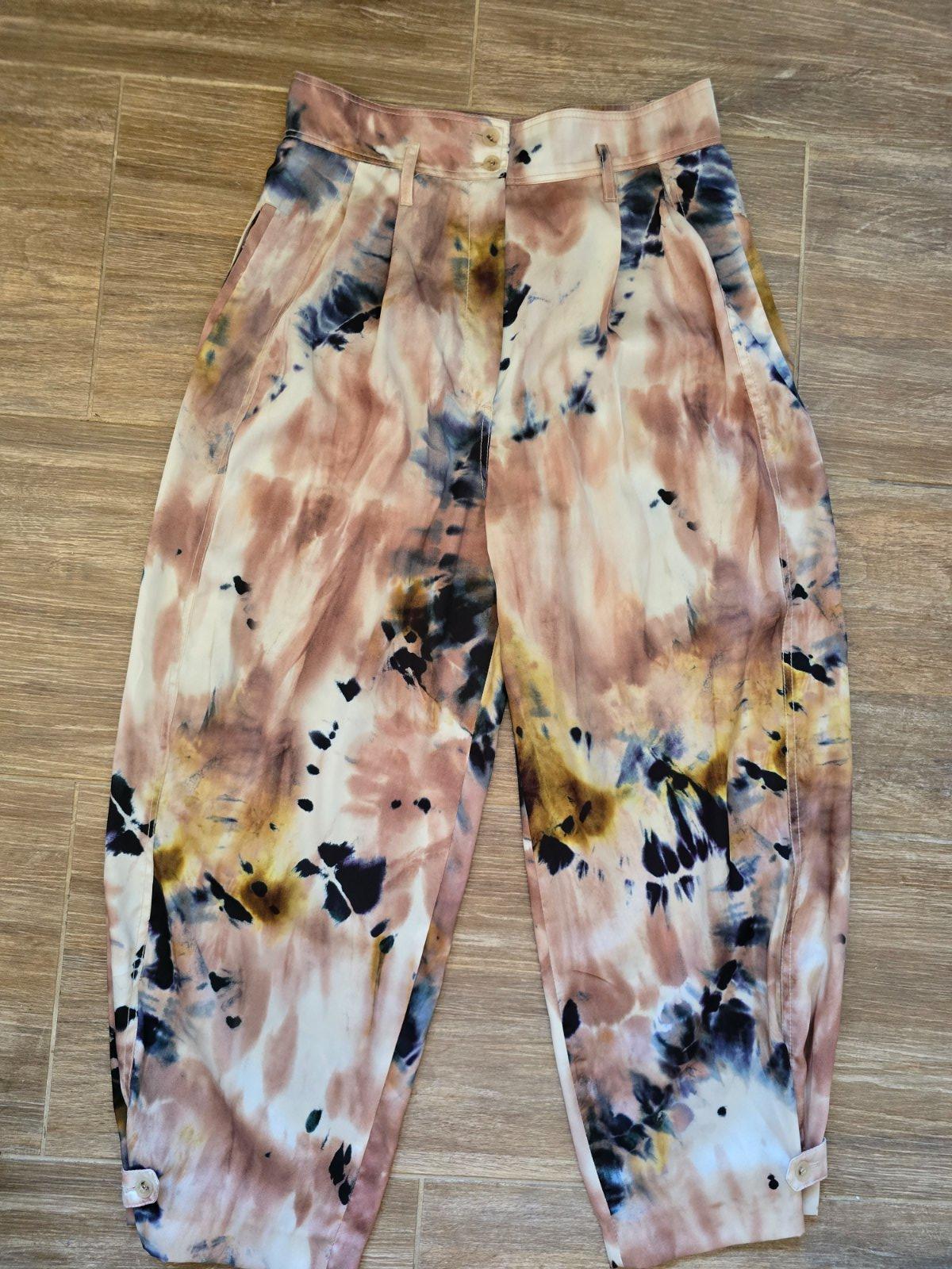 Pohodlné kapsáče na veľkosť M. V páse šnúrka. Odstrihnuté visačky. Dĺžka 108 cm, pás 34 cm a boky 58 cm.