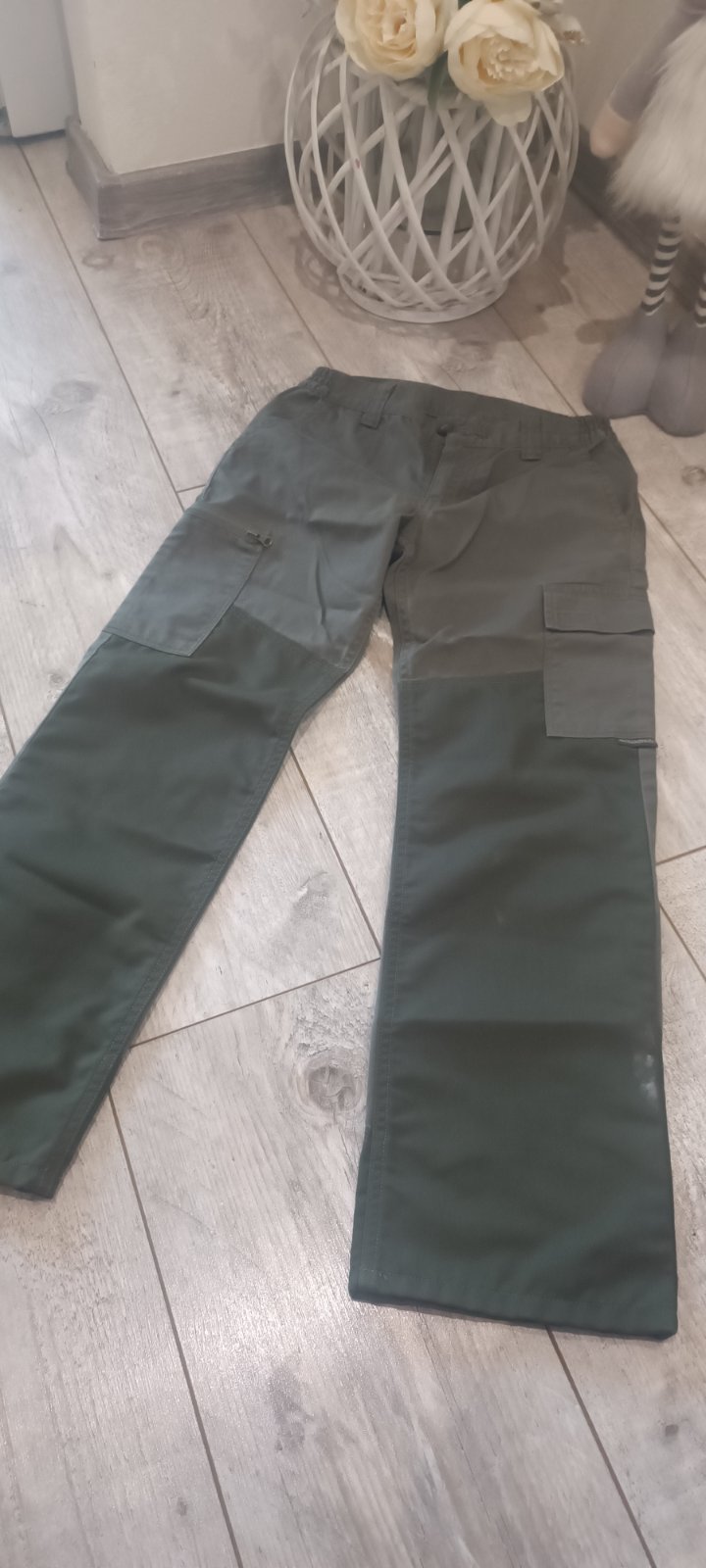 Zelené nohavice vhodné pre malého poľovníka, alebo rybára. Na pravej nohe je malý fľak, ale to nebráni noseniu. V ponuke mám aj zelenú vetrovku. Cena bez poštovného.