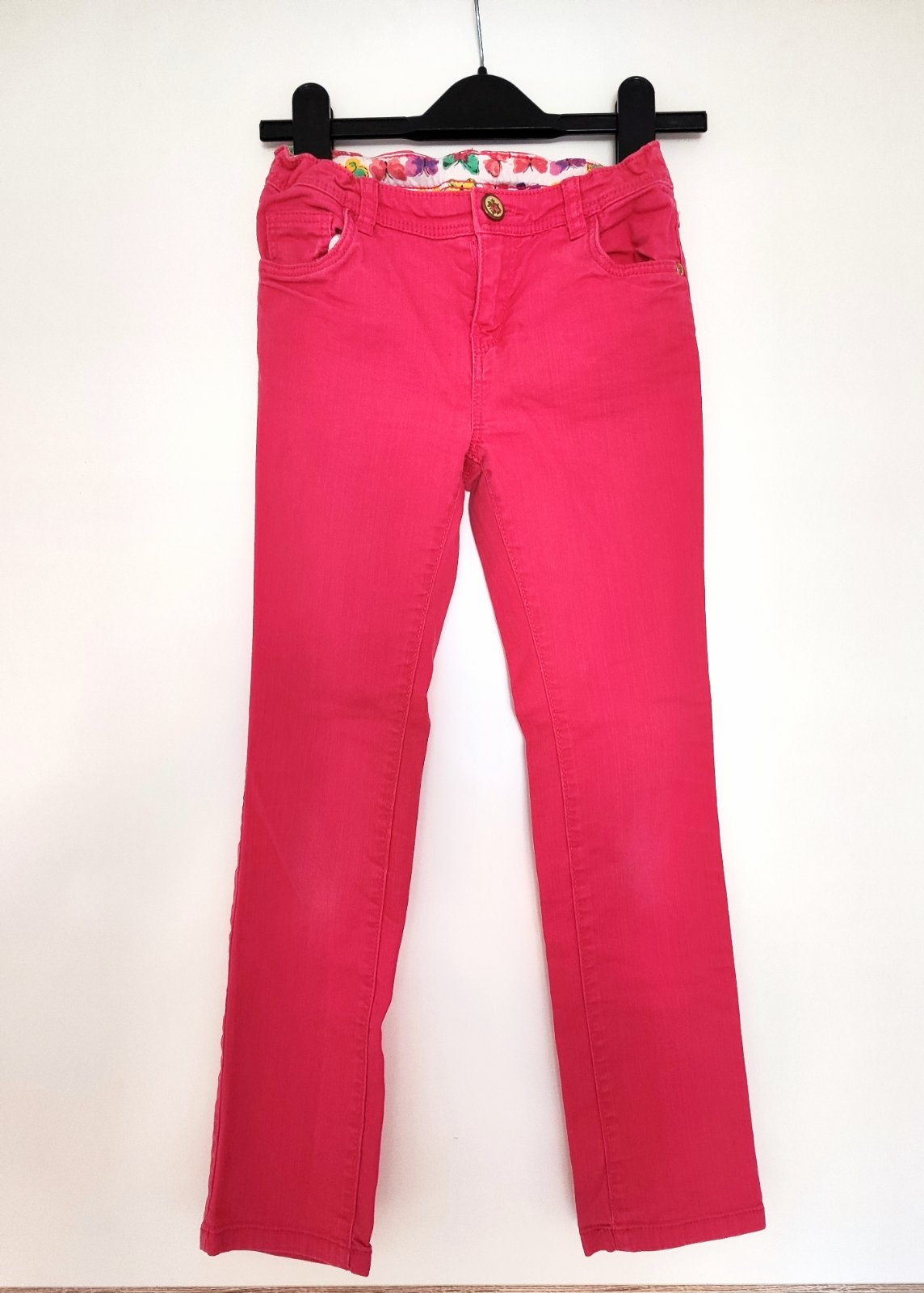Veľmi dobrý stav! Dievčenské menčestrové nohavice. Zapínanie na cvok a na zips. Nastaviteľná guma v páse. Dve bočné a dve zadné vrecká. Pútka na opasok. Materiál 97%bavlna 3%elastan. ROZMERY: dĺžk...