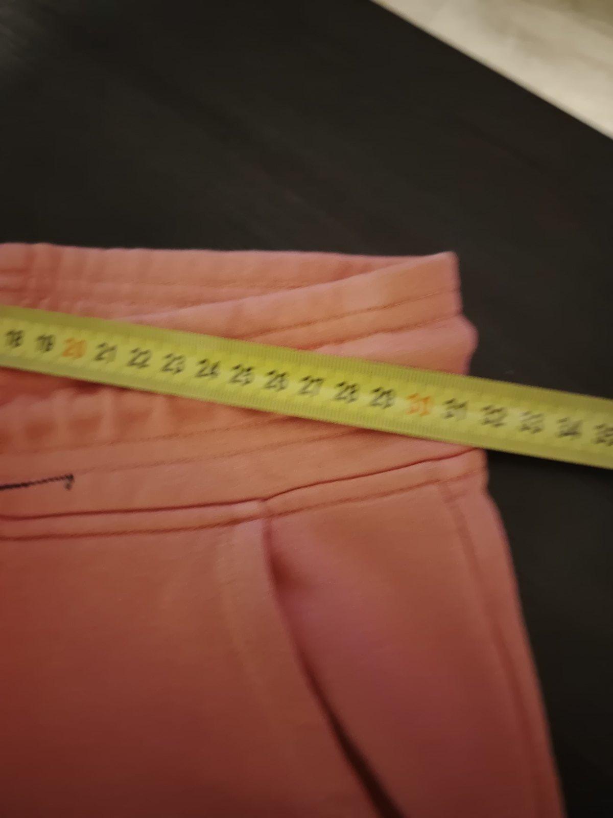 Nenosené dievčenské tepláky v lososovej farbe s vreckami. Uvedená veľ. na 11-12 rokov, teda cca 152. V páse 29 cm, vnut. dĺžka nohavice 70 cm.