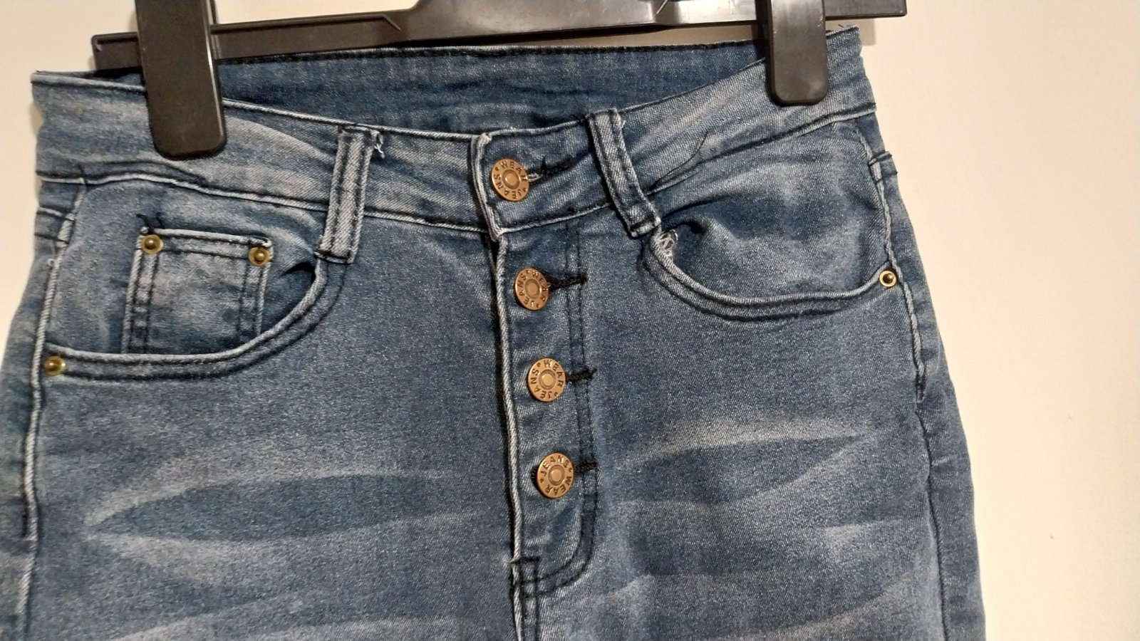 Rifle elastické na gombíky, super stav. Sedia na XS/S, alebo dievčatá 164/170.