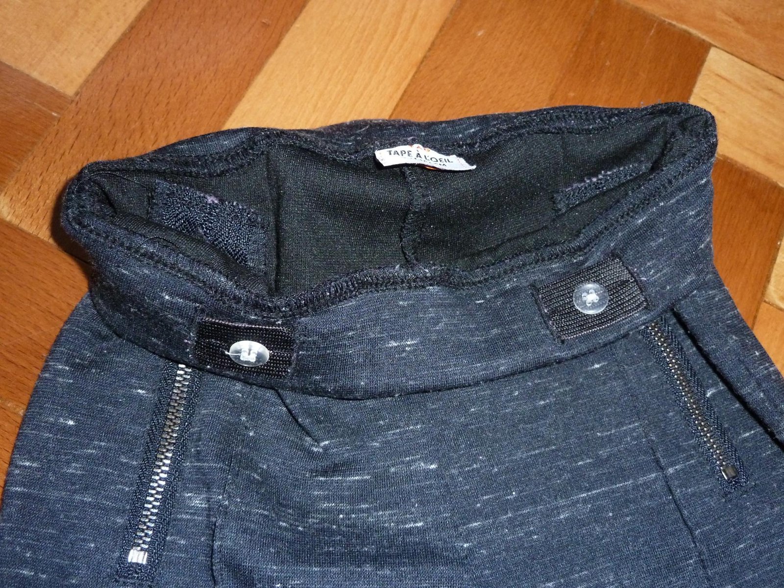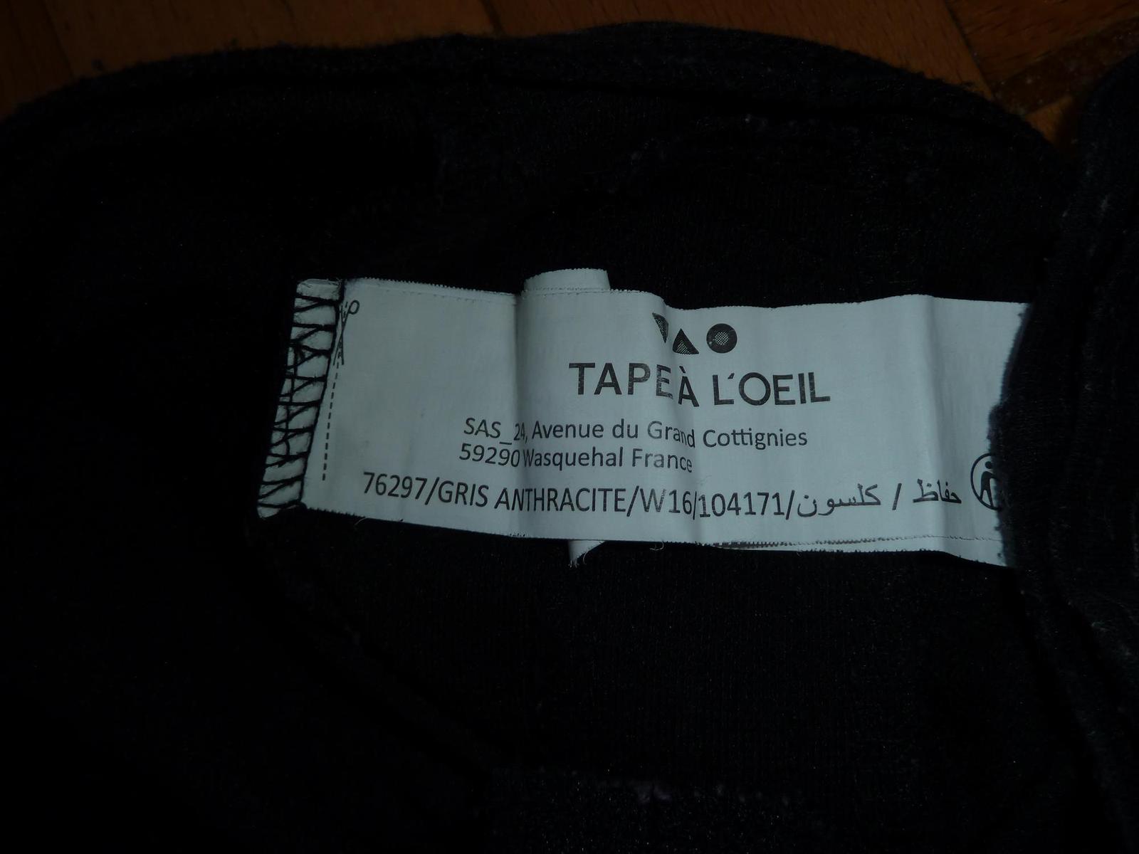 Leginove nohavice zn. Tape A L’oeil, vo velmi peknom nosenom stave, boli kupovane nove, vhodne na prechodne obdobie, farba melirovana tmava seda az cierna, material: 80% polyester, 14% bavlna. 6% elastan. Maju regulaciu v pase, bocne ozdobne zipsy. Su nositelne ako velkost 104/110.