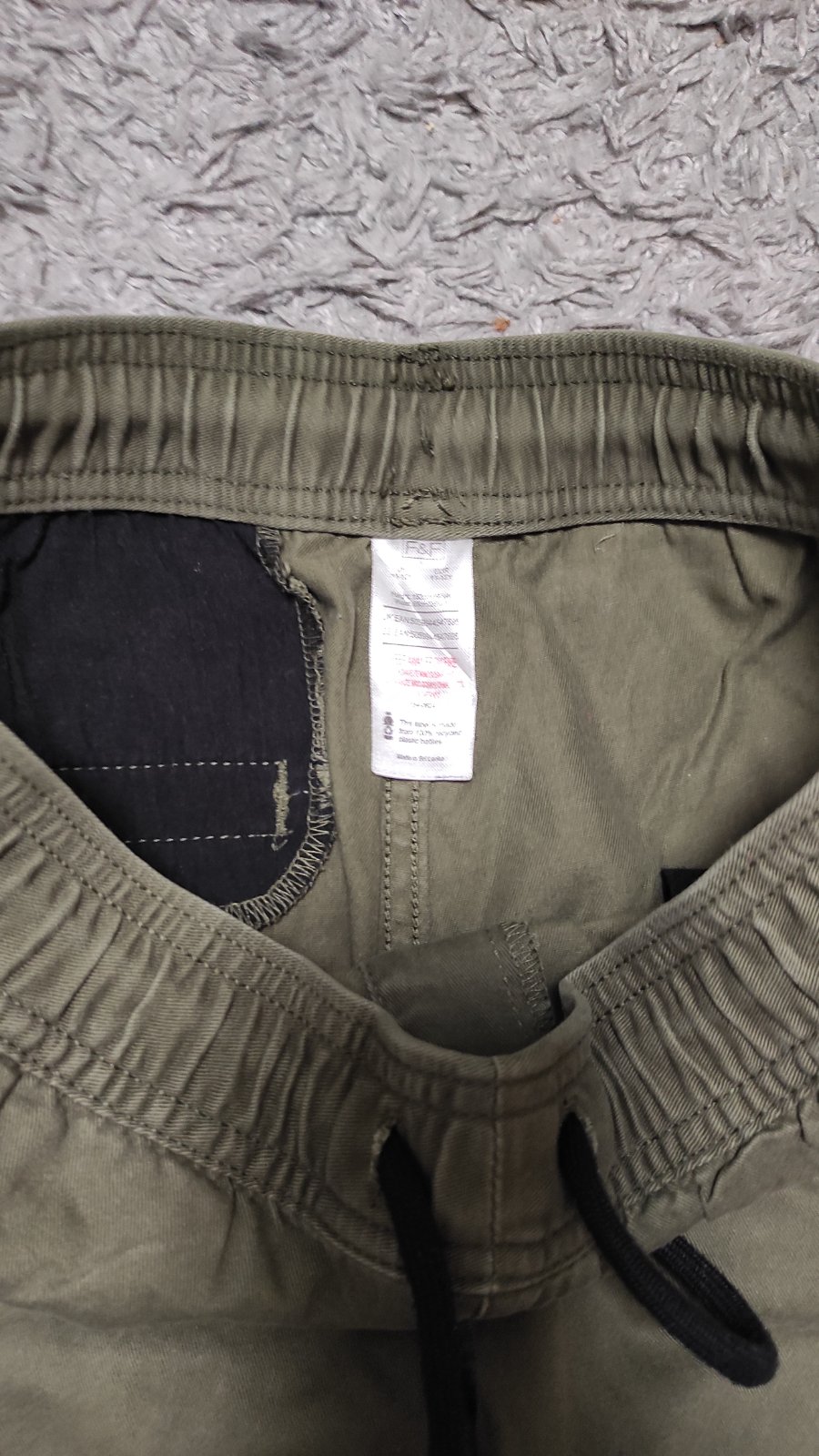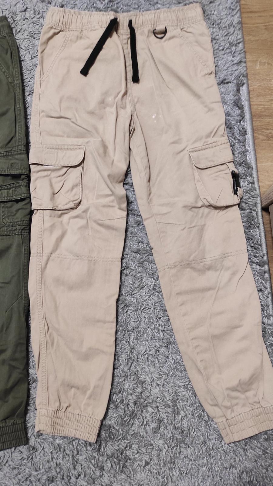 Cargo nohavice vo velmi dobrom vstave.Farba neni vyblednuta neviem preco to tak odfotilo. V pase vsita guma ktora sa da vybrat.