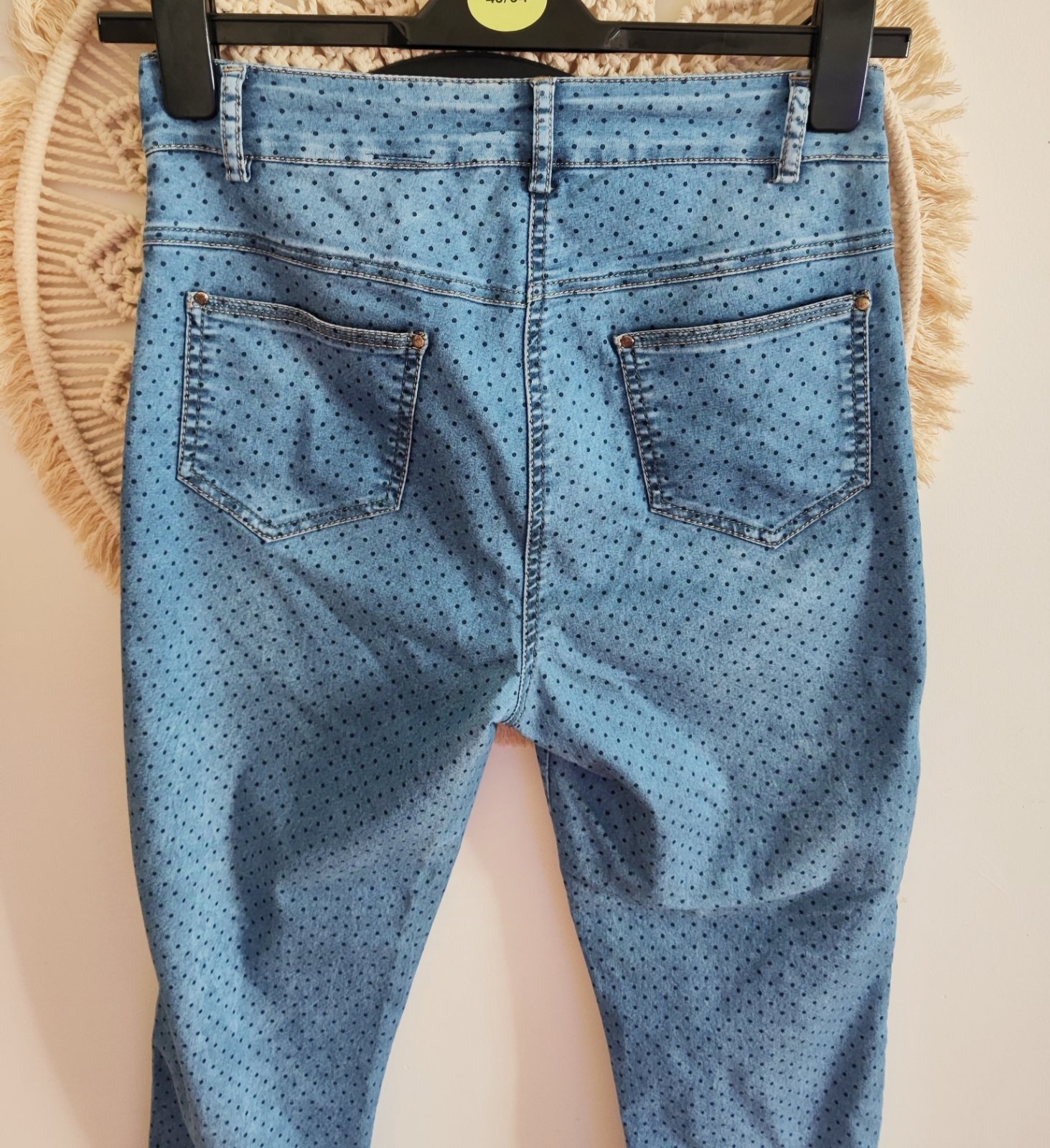 Veľmi dobrý stav, sú mierne strečové. Dĺžka 99cm, pás 2x 41cm. Majú nižší pás