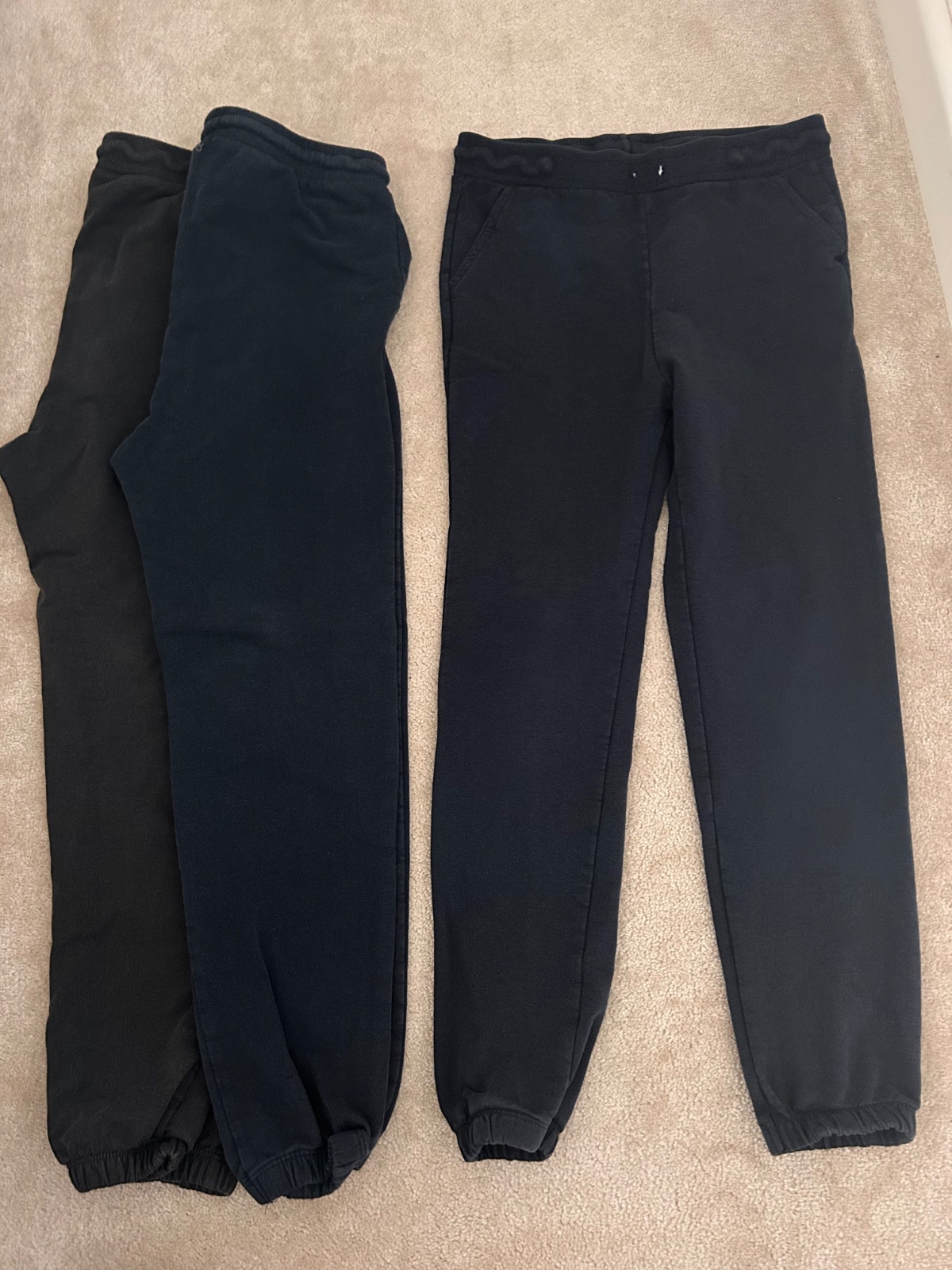 Predam tenke teplaky zn Zara. Velkost pisana na 11-12 rokov, ale skor mensie. Miery su na foto. Maju uzsi strih. 2x tmavomodre, 1x antracitove. Nosene, v dobrom stave.
