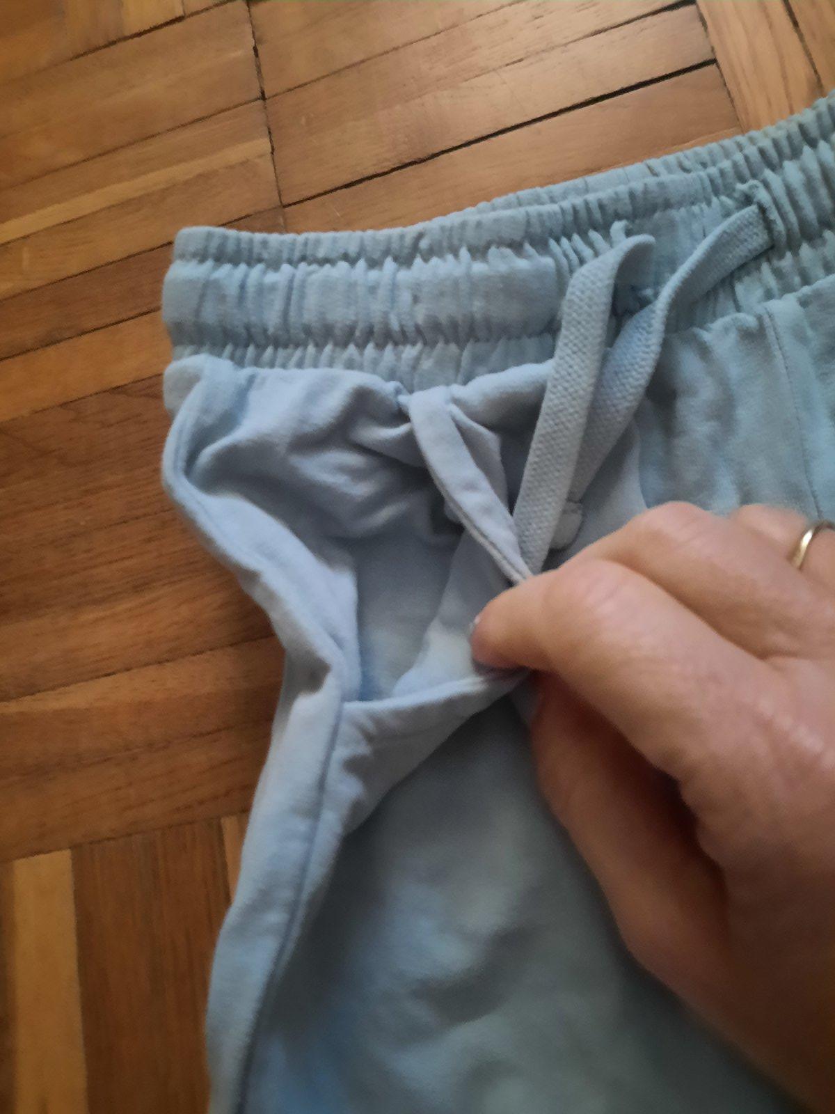 Pekné bavlnené tepláky s vačkami. Farba je jemná modro-sivá. Veľmi dobrý stav.