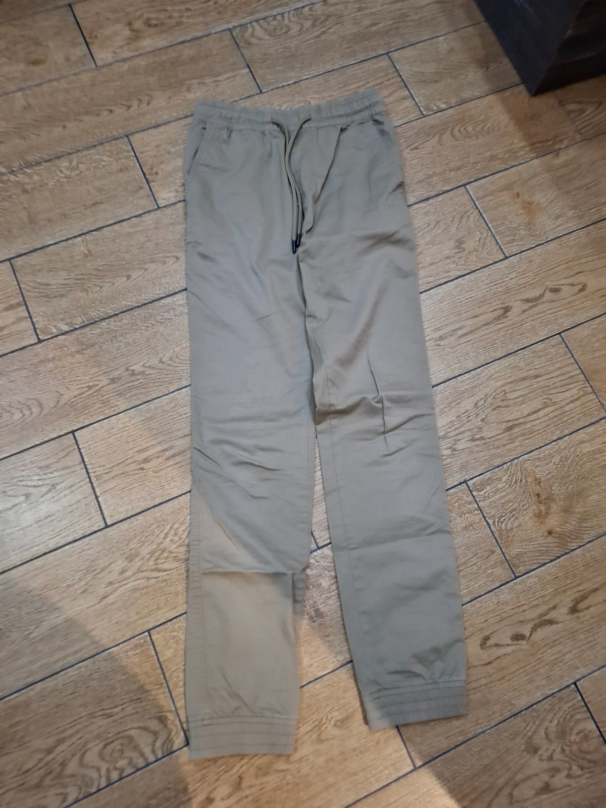 Malo nosene béžové nohavice syn rýchlo vyrástol tenšie vhodné na jar jeseň v páse sú so sťahovaním na šnúrku spodok ukončený do lemu 2 x bočne vrecka 2 x zadne vypustkovr vrecka veľkosť panska xs sedi na 164 až 168 cm rozmery: