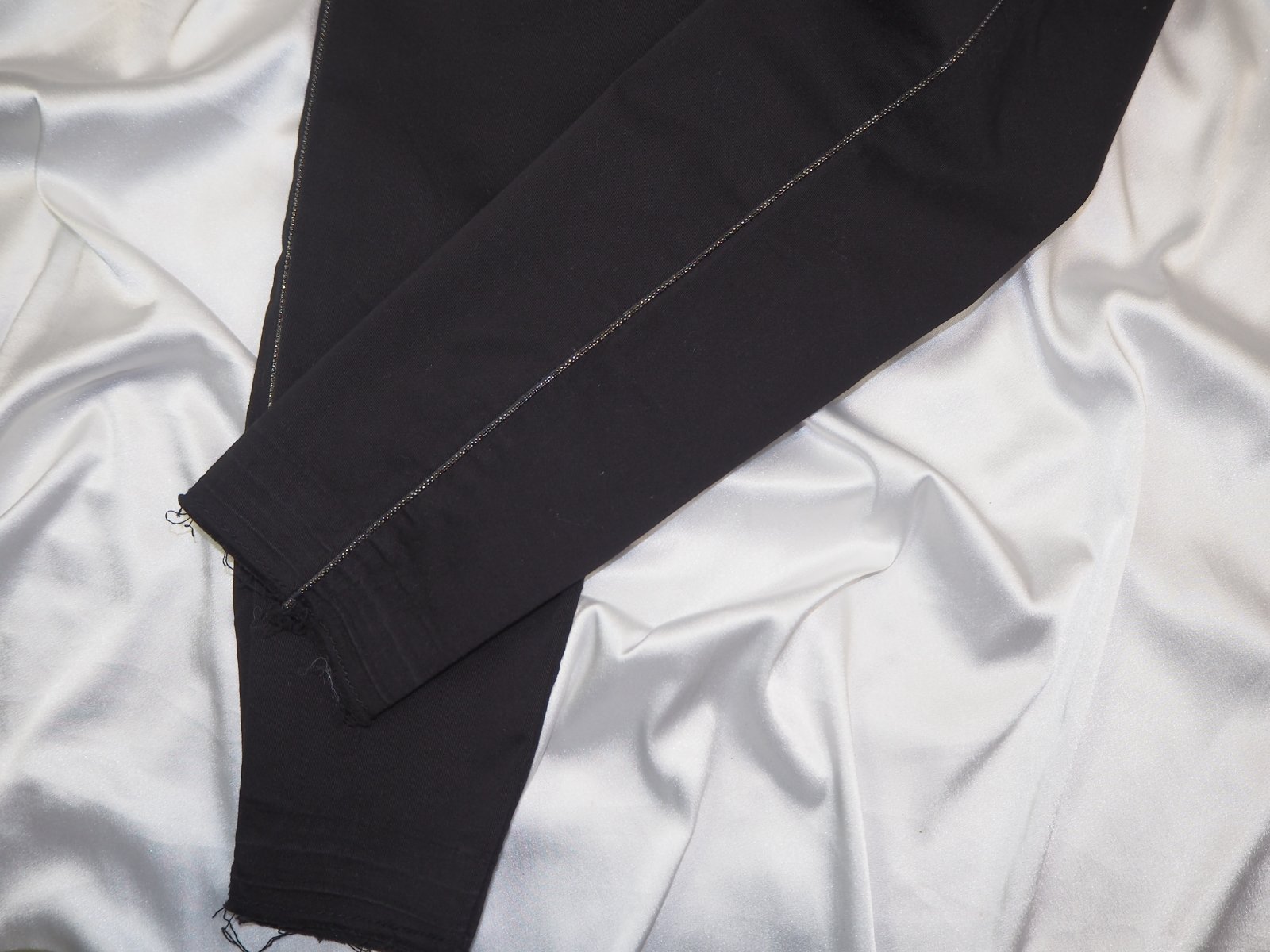Kvalitné čierne strečové nohavice s bočným pásikom, zapínanie na zips a gombík, materiál 97% bavlna, 3% elastan, super stav, ako nové...pc 49 €