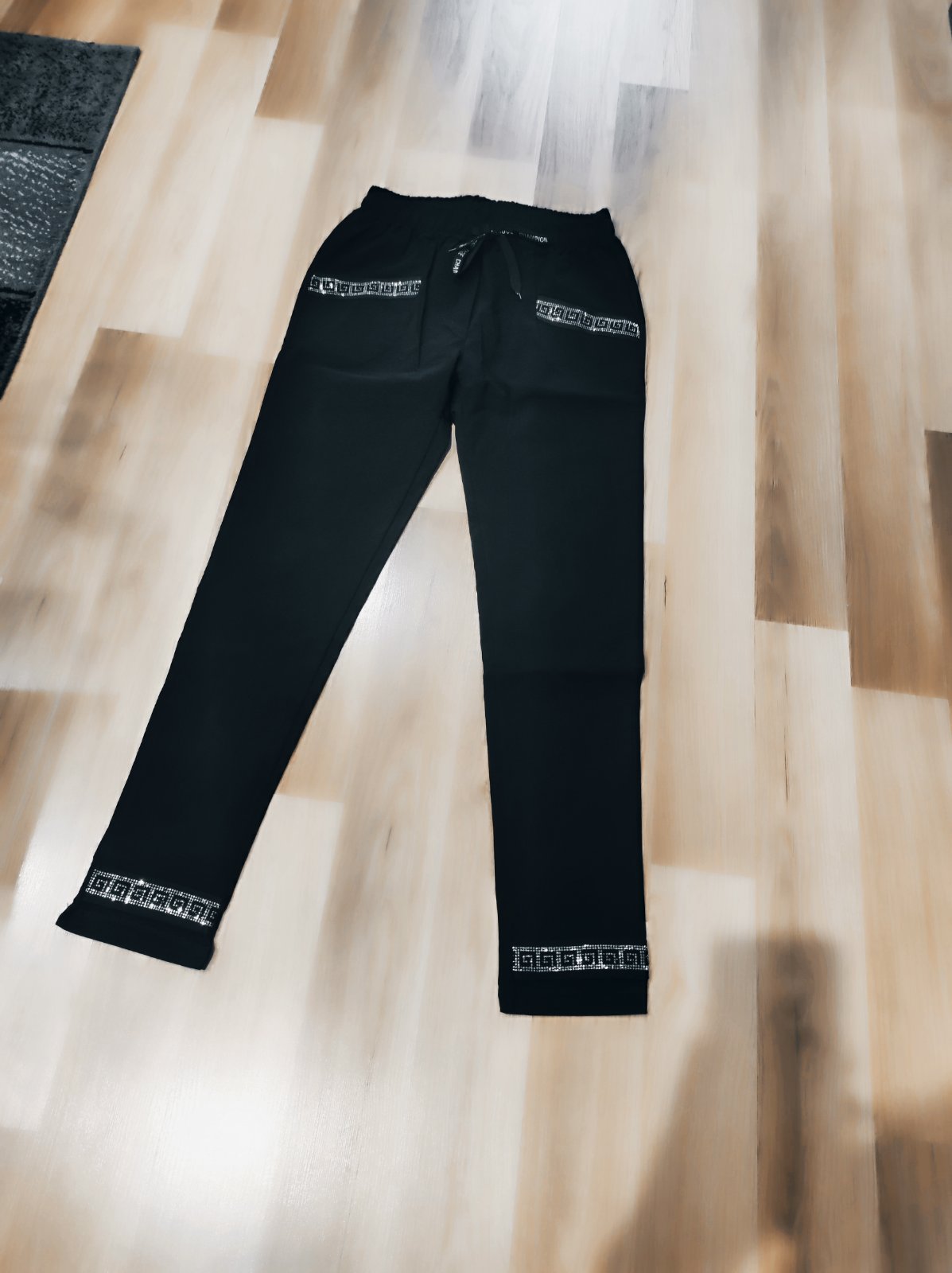 Čierne Championy nohavice s gréckym vzorom