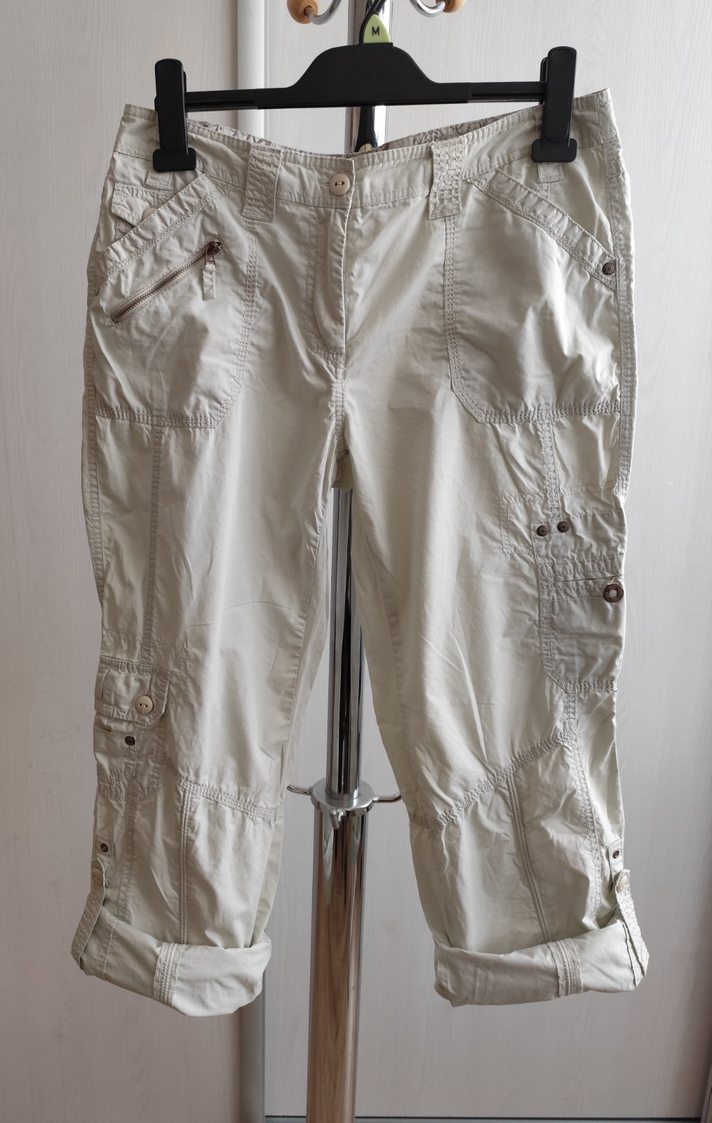 Kvalitné tenké plátené nohavice na leto v perfektnom stave. Pevný pás s pútkami na opasok. Rozmer 2 x 41 cm, dĺžka 103 cm. Vyhrnuté dĺžka cca 78 cm. Krásne prepracované, množstvo detailov... Funkčné vrecká 2x vpredu, 2x vzadu a 2x po stranách nohavíc. NC: 59,99€