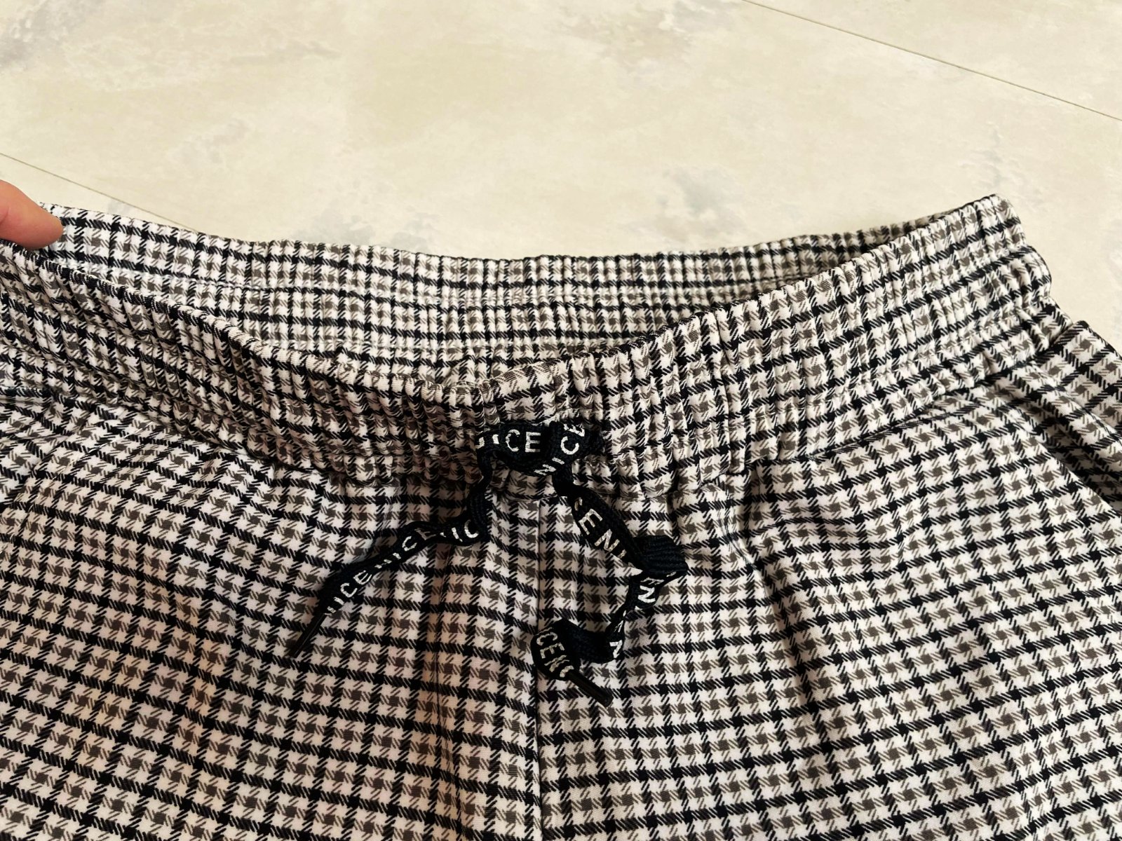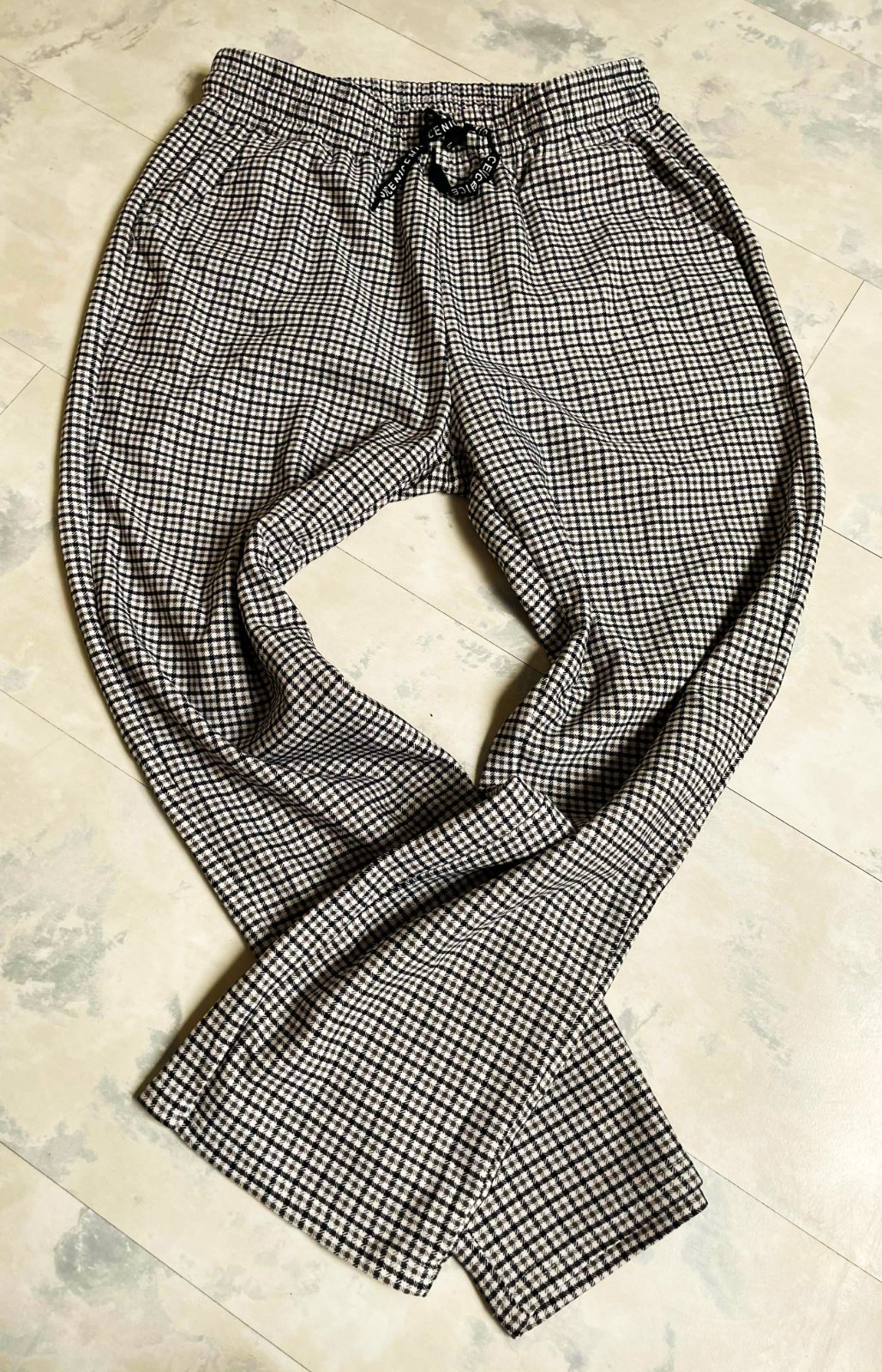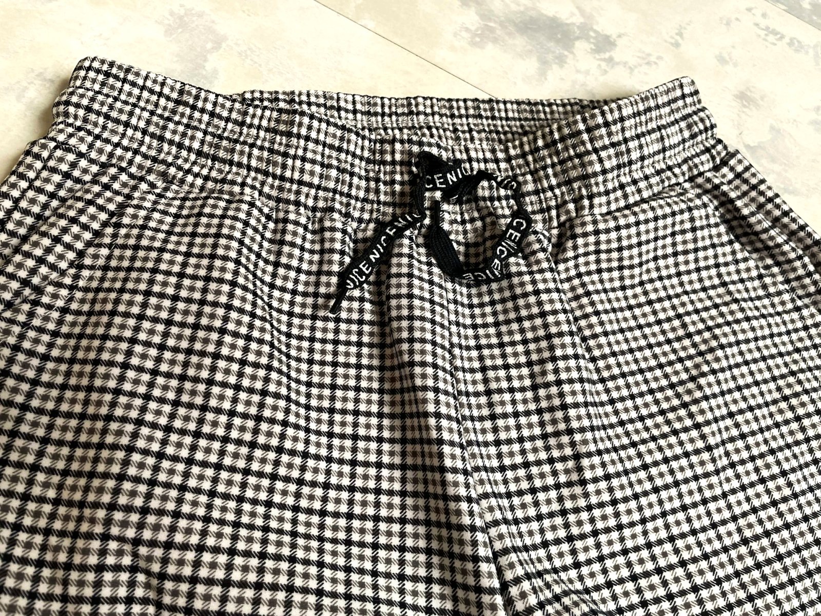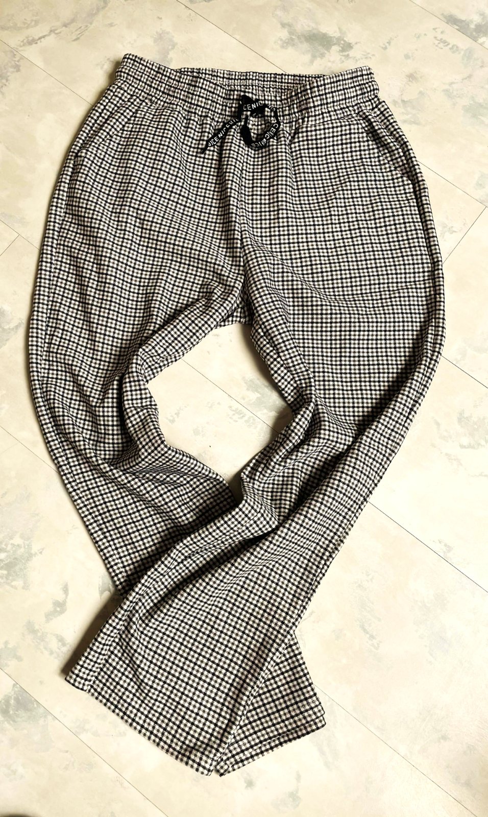 pepitové nekrčiace sa a pekne držiace formu nohavice na gumičku, s bočnými vreckami v top stave