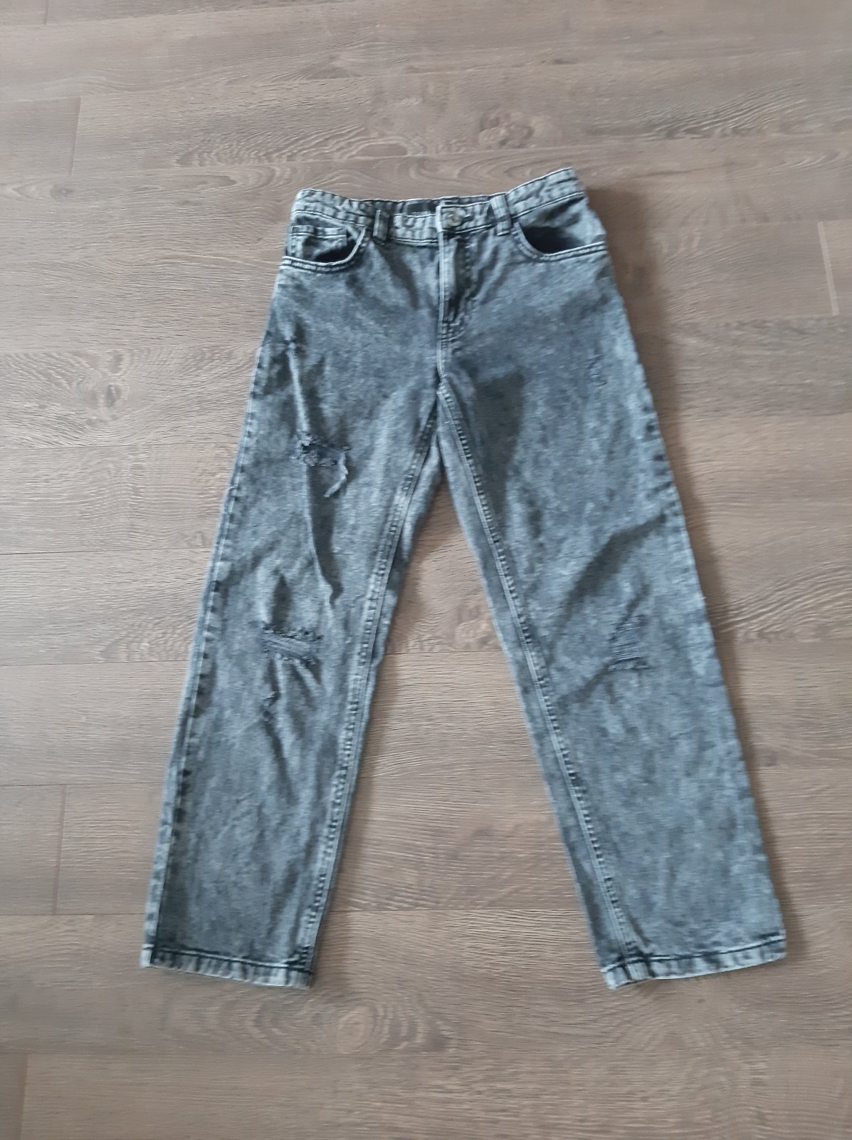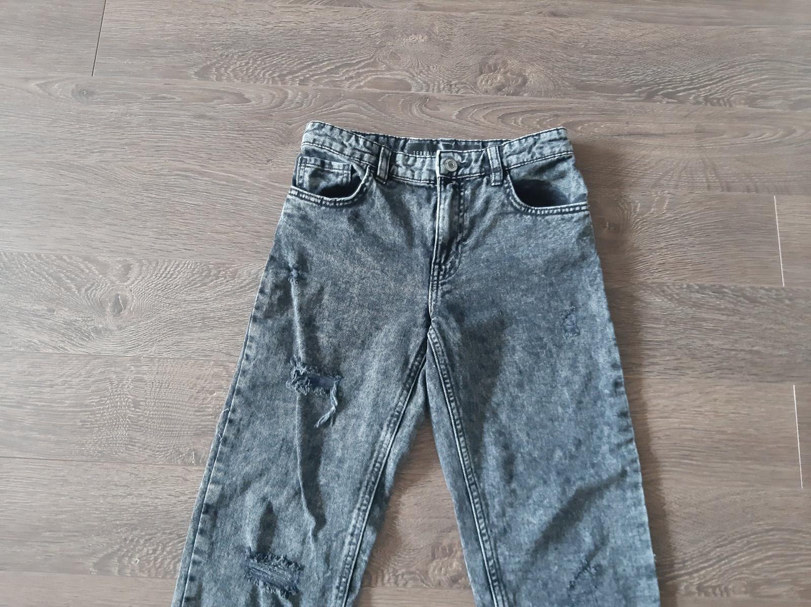 Málo nosené tenké rifle bez poškodení. Dĺžka od rozkroku 77, pés 38 cm x2. Predný sed 19, zadný sed 35 cm