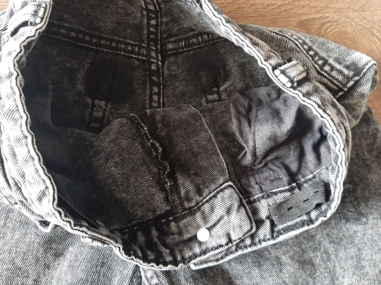 Bez poskodeni, pevna riflovina, vo vnutri gumka.Dlzka 82 cm, pas 34 cm-prisposobite si gumkou,sed 25 cm, volny siroky strih.Cena aj s postou je 13 eur.